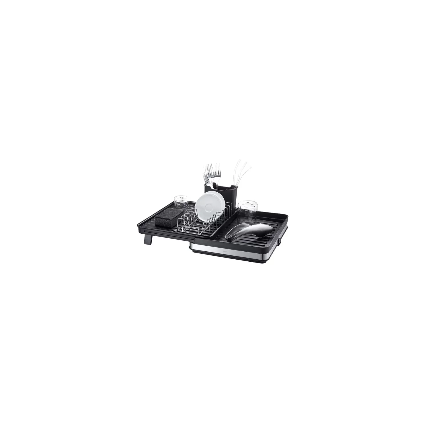 Con lo scolapiatti SMARTLINE dal design intelligente, piatti, bicchieri e posate possono asciugarsi in modo efficiente e allo stesso tempo garantire più ordine dopo il lavaggio. Regolabile nelle dimensioni e flessibile per l'uso in cucine piccole e grandi, in campeggio e per lavaggi rapidi tra un lavaggio e l'altro.