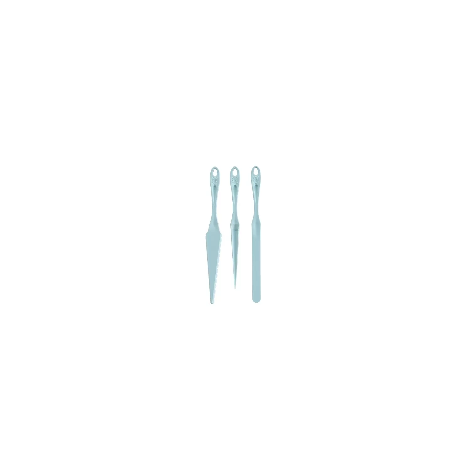 Questo kit di accessori contiene tre strumenti creativi con forma e flessibilità utili per servire, tagliare ed estrarre più semplicemente le preparazioni dagli stampi. Le diverse punte, i bordi e gli angoli assicurano che ogni torta sia estratta in modo eccellente, anche quando la teglia non è stata unta alla perfezione.
