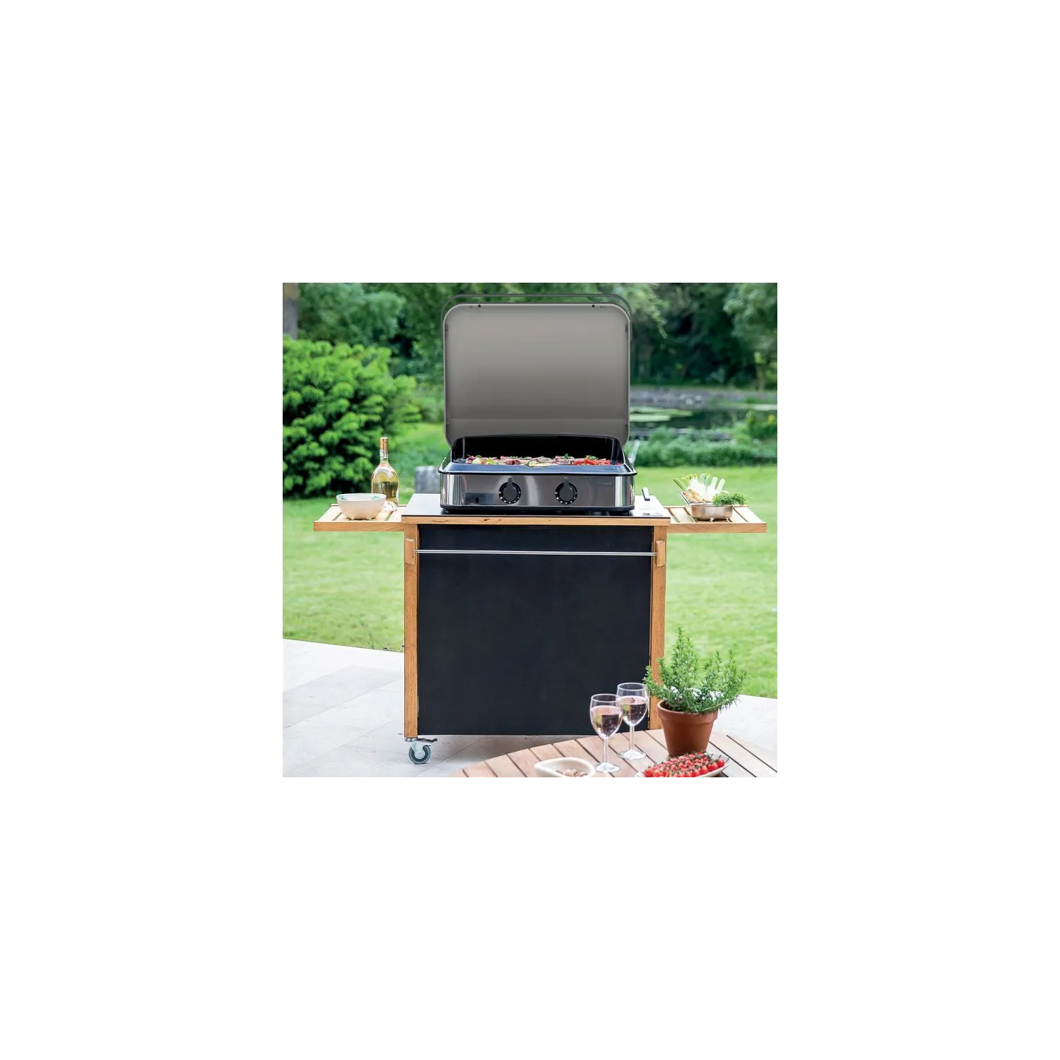 Protezione durevole del tuo EnoTING 65 gas o plancha elettrica con la copertura in acciaio inossidabile. Realizzato in acciaio inossidabile di grado marino, resiste alle intemperie e ai condotti UV e offre un'efficace protezione contro la corrosione, la polvere, le foglie morte... Progettato per una maneggevolezza regolare e sicura, ha una robusta maniglia in alluminio e un sistema di apertura / chiusura a cerniera. Le sue dimensioni sono specificamente progettate per adattarsi alle forme della tua plancha dei segni Eno, garantendo una protezione ottimale. È del tutto rimovibile. Una volta in posizione, il tappo copre completamente la piastra di cottura proteggendolo dalla polvere. Ti permette di trovare una plancha pulita e pronta all'uso in un istante. Ciò consente di risparmiare tempo di pulizia prima di ogni utilizzo. Ideale per mantenere il cibo caldo, questo cofano plancha non è un coperchio da cucina
