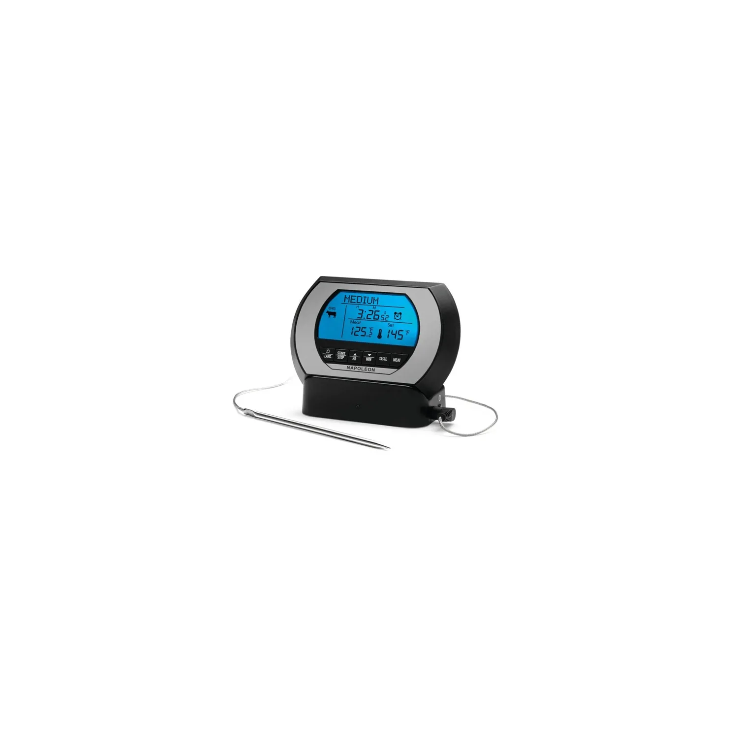 Rendi ancora più facile grigliare la bistecca o l'arrosto perfetti. Il termometro digitale wireless Napoleon ti indicherà quando la carne è pronta.
