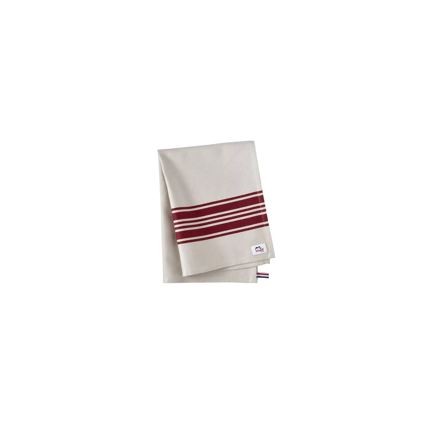 Il nuovo strofinaccio da cucina di STAUB dalle dimensioni di 50 x 70 cm è un vero Allrounder per la tua cucina. Potrai eseguire in maniera impeccabile tutti i compiti previsti per lo strofinaccio, ma con la comprovata qualità STAUB: asciugare, pulire, lucidare... Cucinare senza uno strofinaccio è pressoché impensabile. Inoltre, questo è particolarmente assorbente, realizzato in cotone puro e studiato per una maggiore durabilità: in un angolo troviamo un pratico laccetto ricamato e gli orli su tutti e quattro i lati sono ripiegati. Degno di nota è anche il design raffinato e senza tempo. La calde righe rosso carminio formano un grazioso contrasto sulla stoffa bianco naturale e si sposano bene sia con una cucina di una casa di campagna, che con una cucina minimalista o professionale. Una discreta etichetta con il logo STAUB rivela il produttore e lorigine del design nella bandierina tricolore francese. In ogni caso, lo strofinaccio STAUB è un elemento che arricchisce ogni cucina.