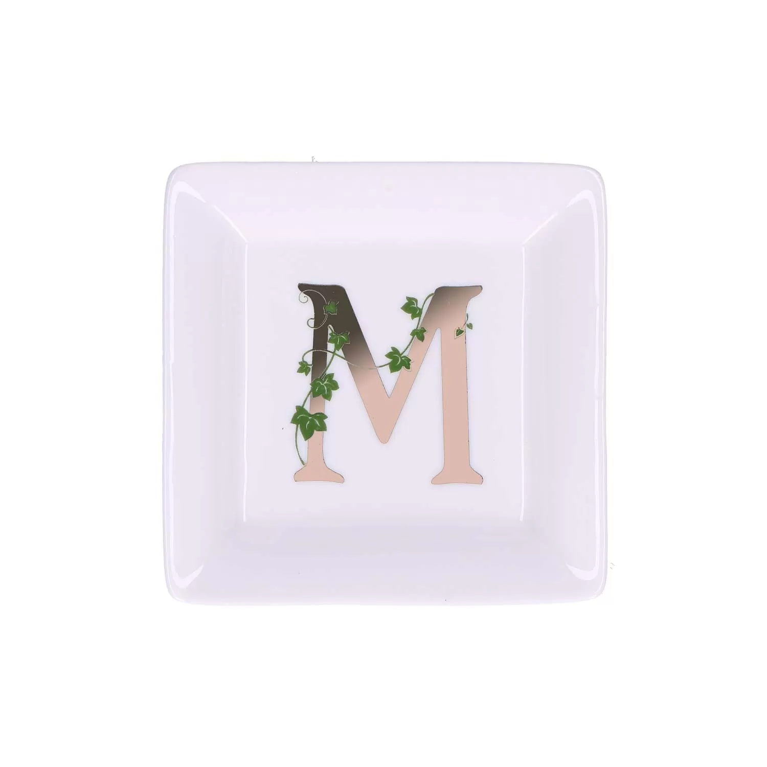 Adorato, Piattino quadrato 'm' Cm. 10x10 - La Porcellana Bianca