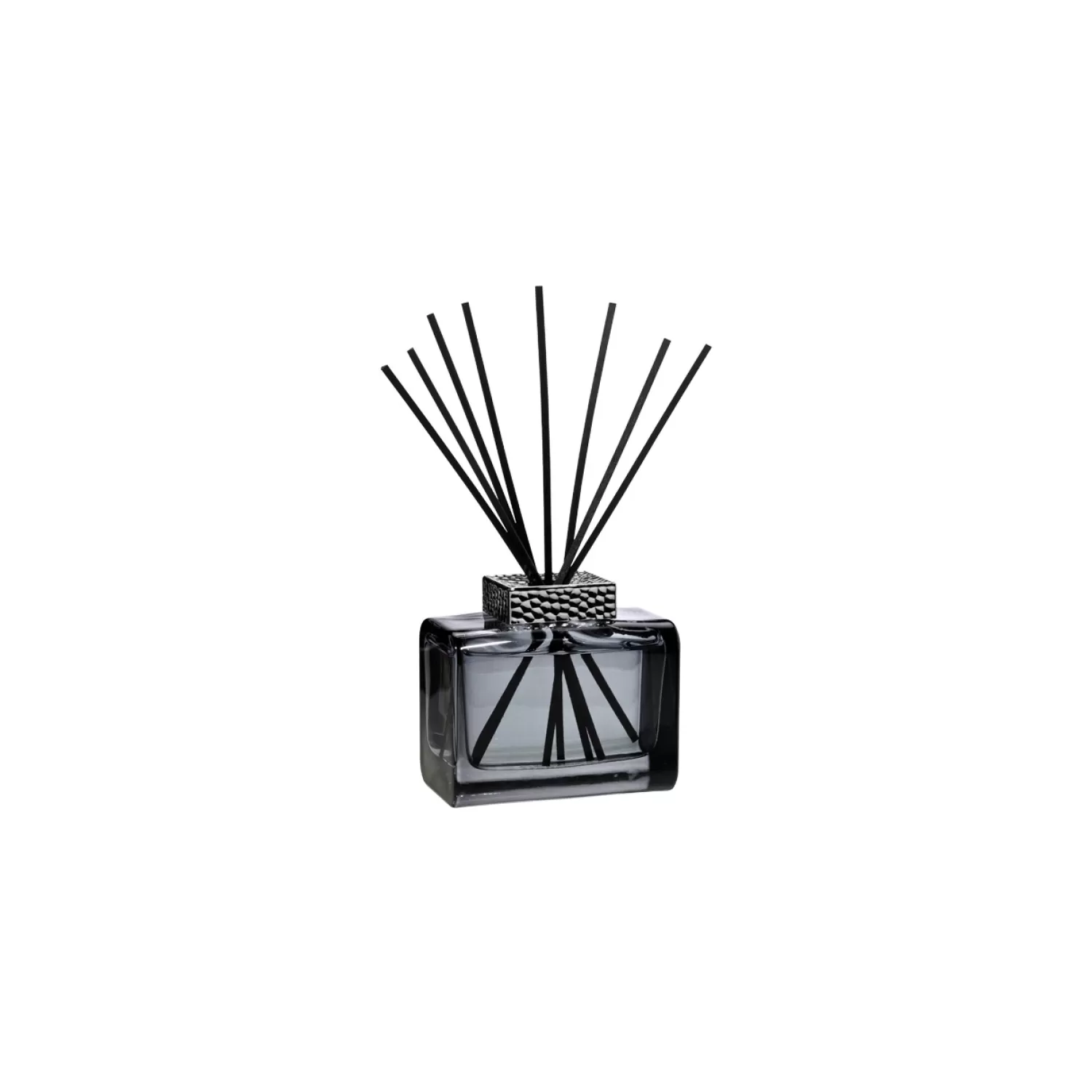 Un elegante cubo in vetro trasparente (260 ml) decorato da un anello argentato e valorizzato dal suo bouquet di bastoncini neri per un design contemporaneo. Elaborati in un polimero tecnico, gli 8 bastoncini garantiscono una diffusione ottimizzata del profumo senza decolorazione nella soluzione. Altezza dei bastoncini: 21 cm. Tempo di diffusione: +/- 8 settimane dutilizzo (secondo il profumo, tra 4 e 10 settimane). -Venduto riempito. Ricaricabile con la ricarica per bouquet profumato 200 ml.