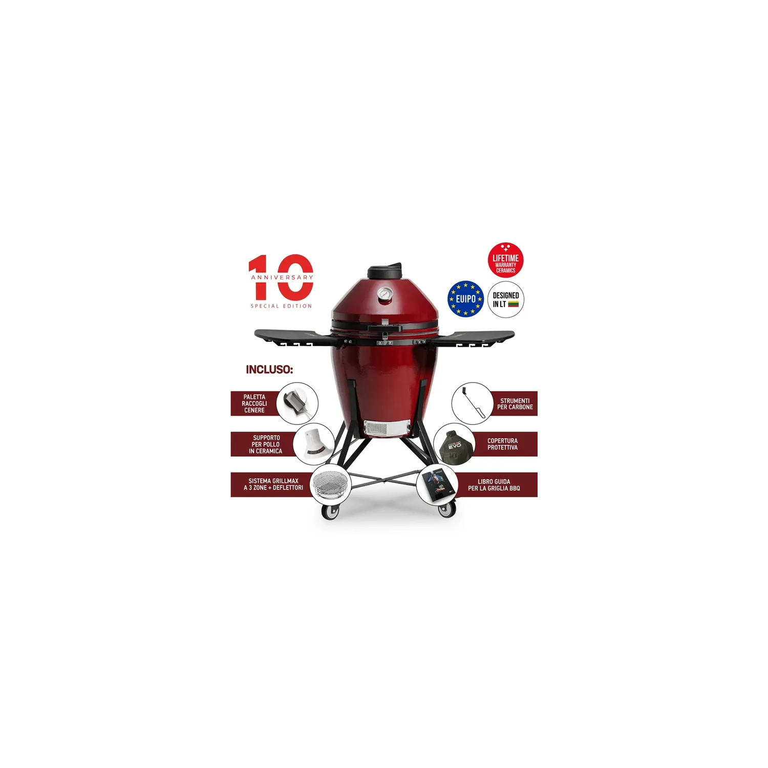 Barbecue kamado a carbone in ceramica, Red Royal Media Evo - Kamado Bono.