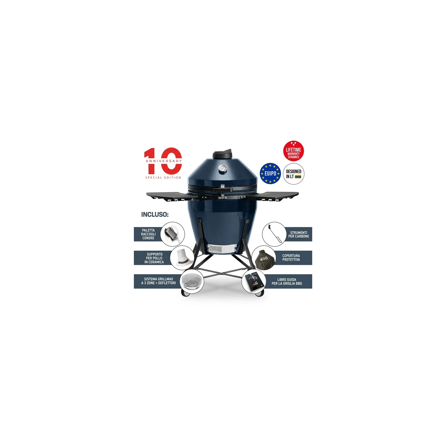 Barbecue kamado a carbone in ceramica, Blu Navy Grande Evo - Kamado Bono