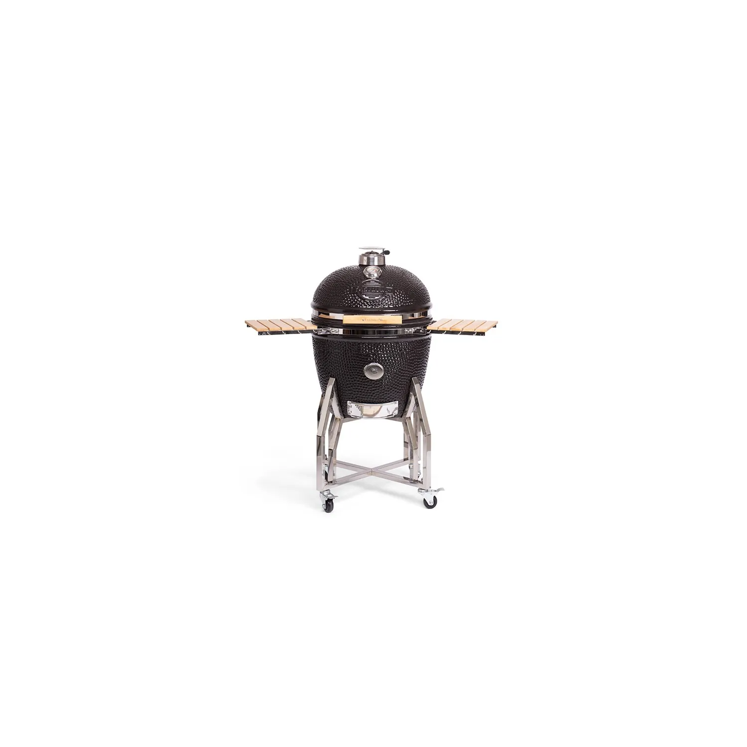 Il modello XXLARGE viene fornito di serie con una base e dei tavolini laterali, in modo che il Kamado sia facile da spostare. I tavolini sono realizzati in bambù e consentono di riporre tutti gli alimenti e di avere gli accessori a portata di mano.