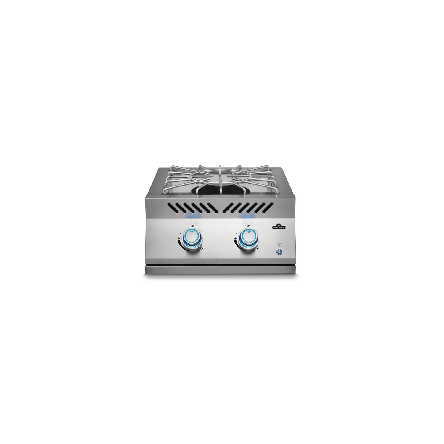 Questo potente bruciatore è ideale per cucinare all’aperto con la massima versatilità. Le manopole di controllo retroilluminate con tecnologia SafetyGlow rendono la cottura semplice anche dopo il tramonto: le luci passano dal blu (freddo) al rosso quando il bruciatore è acceso, evitando di lasciarlo accidentalmente in funzione.