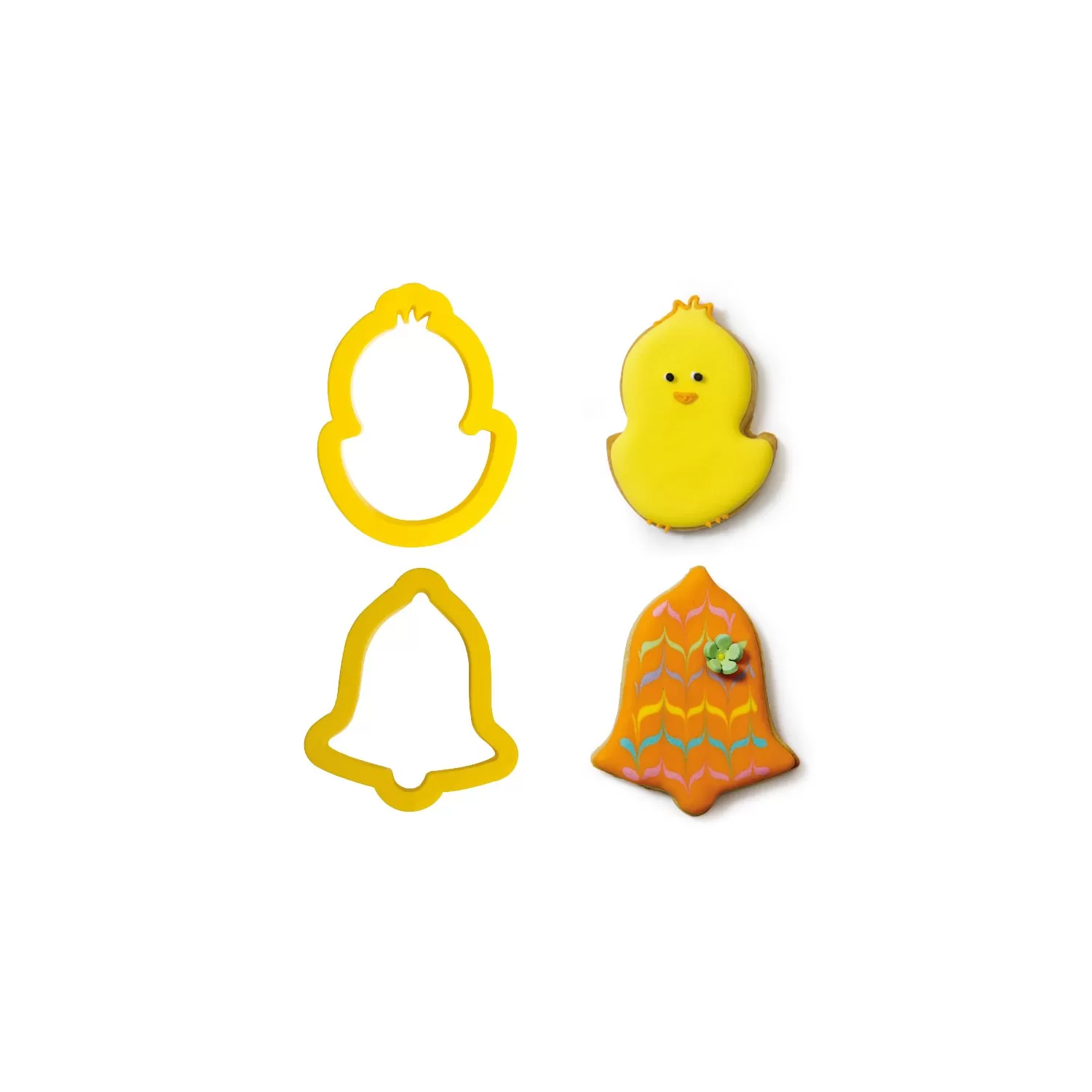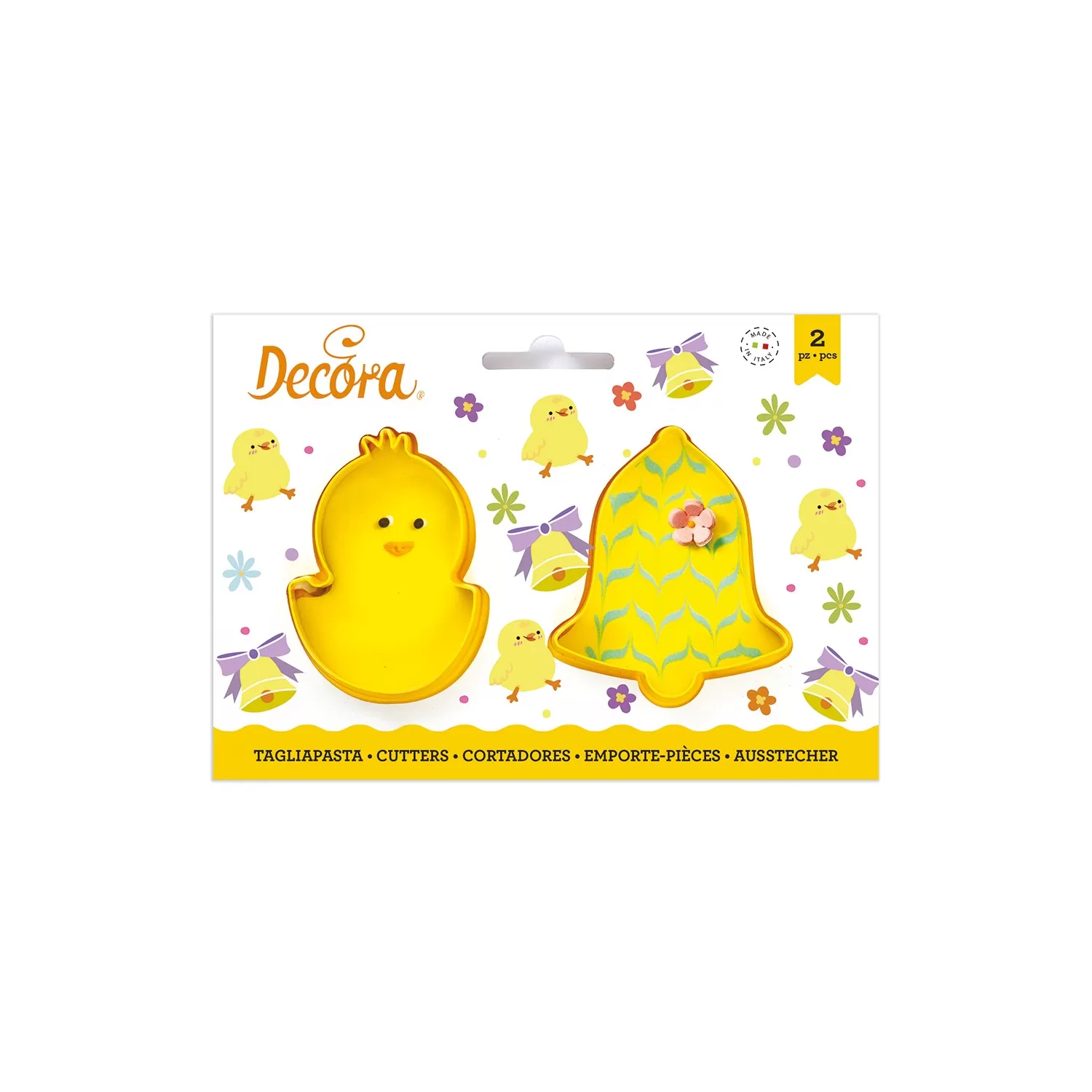 Set 2 tagliapasta pulcino e campana 8/9xh 2,2 cm in plastica - Decora.