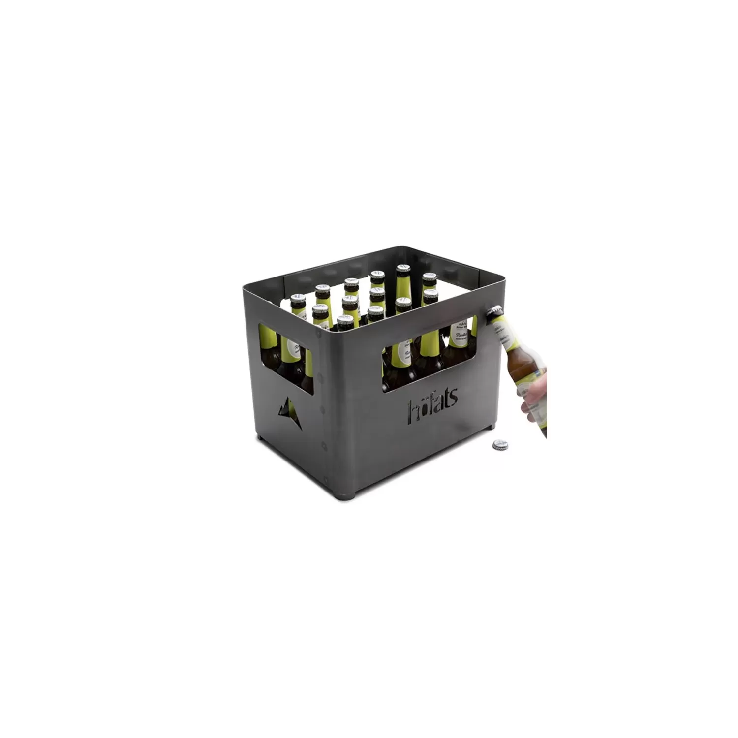 Con BEER BOX hai tutto con te. Che si tratti di bottiglie, legna o attrezzatura per barbecue, metti tutto ciò di cui hai bisogno nella scatola e all'aperto! Il fuoco sta bruciando? Metti la griglia e la grigliata può iniziare! Puoi lasciare tranquillamente a casa l'apribottiglie per tappi a corona: è integrato in modo permanente nell'alloggiamento.