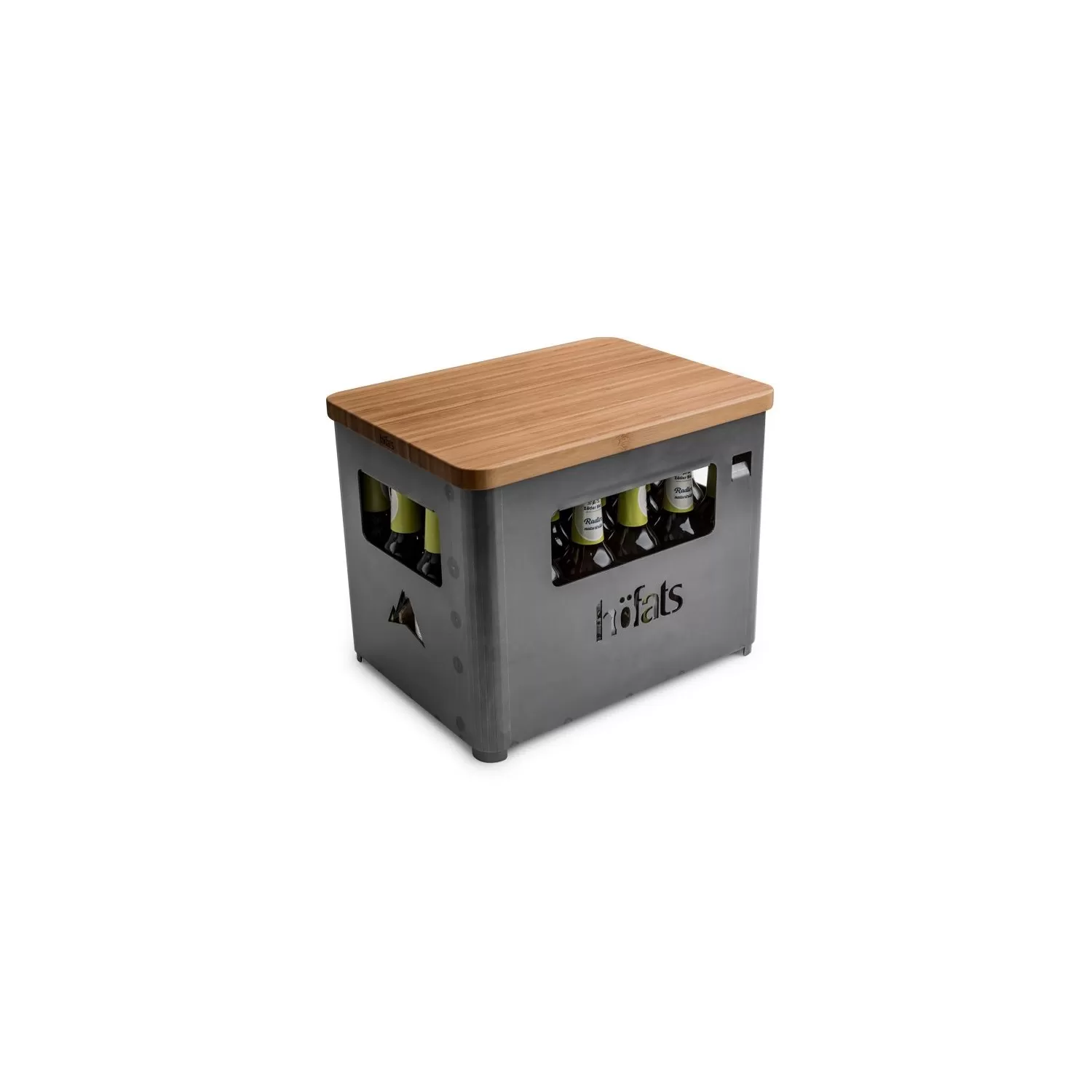 Se il BEER BOX non viene utilizzato come braciere o griglia, puoi trasformarlo in uno sgabello in pochissimo tempo con il piano di appoggio.