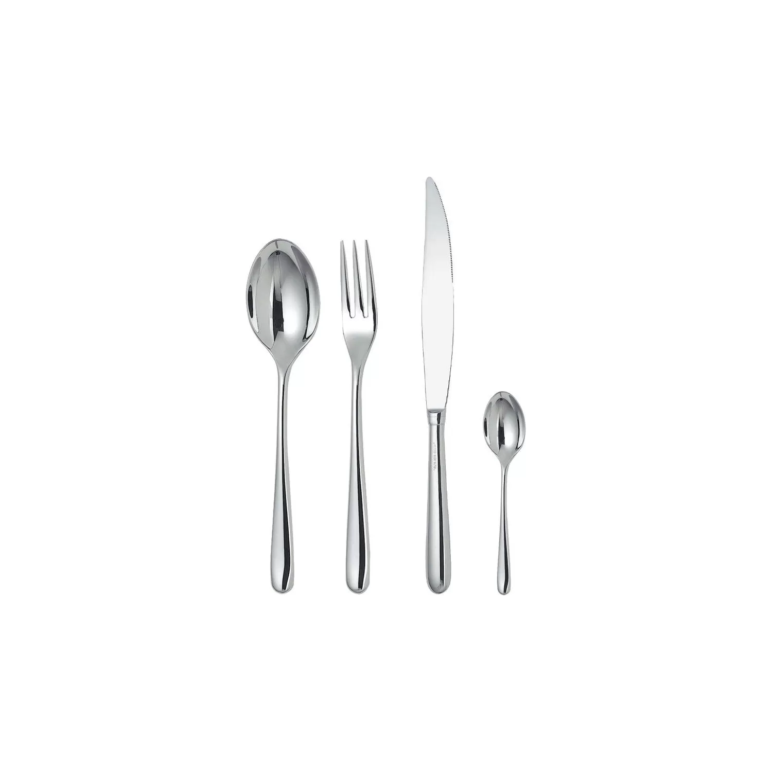 Caccia, Servizio Posate 24 pezzi. Servizio di posate composto da sei cucchiai da tavola, sei forchette da tavola, sei coltelli da tavola, sei cucchiaini da tè in acciaio inossidabile 18/10 lucido.