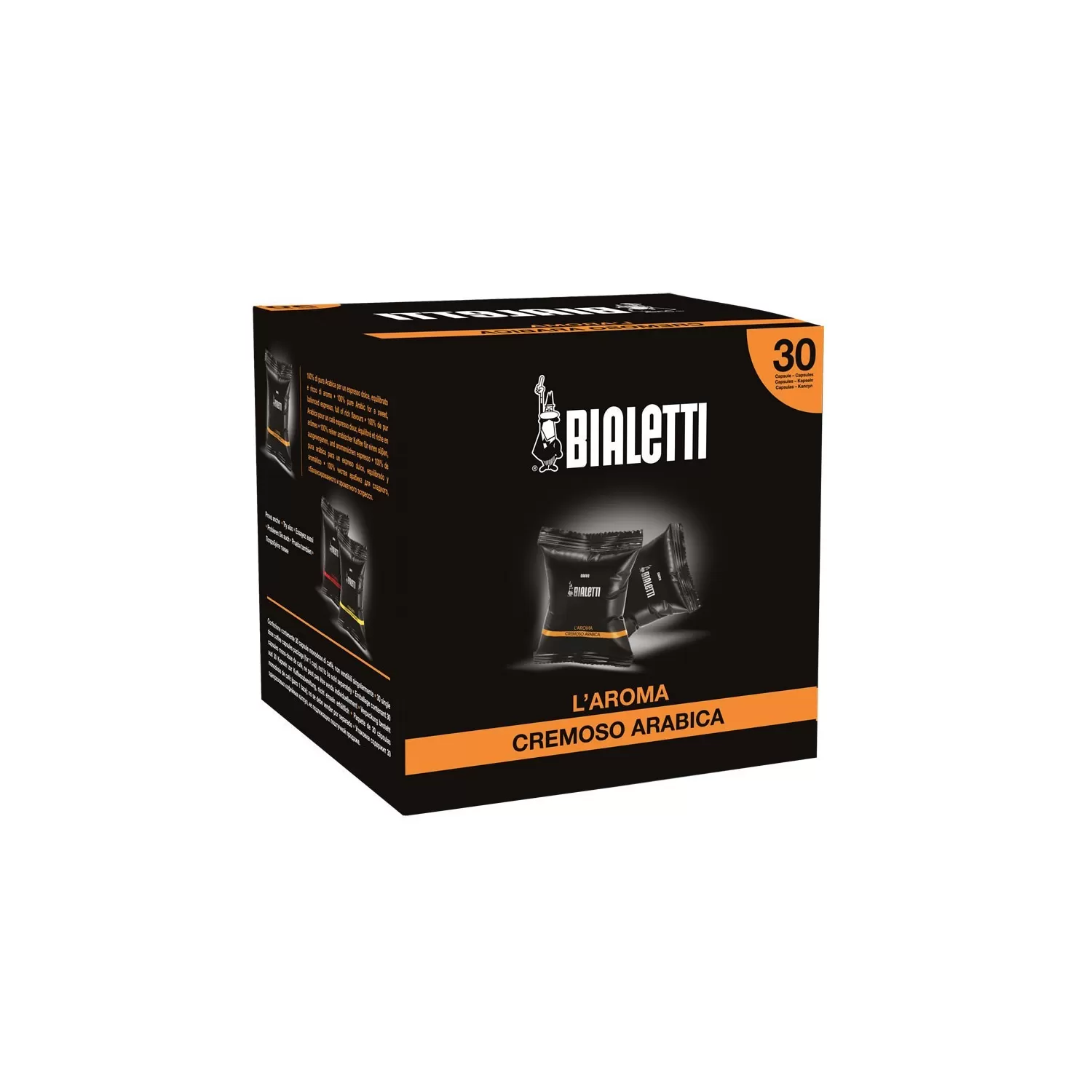 Confezione da 30 capsule L'Aroma, Cremoso Arabica. Il primo caffè non si scorda mai. In tre gusti semplici ed essenziali, le capsule standard Bialetti raccontano i primi passi di Bialetti nel mondo del caffè. Caratterizzate da un innovativo materiale plastico per mantenere la freschezza degli aromi, le capsule Bialetti standard nascono per funzionare con le macchine Bialetti trivalenti di prima generazione.