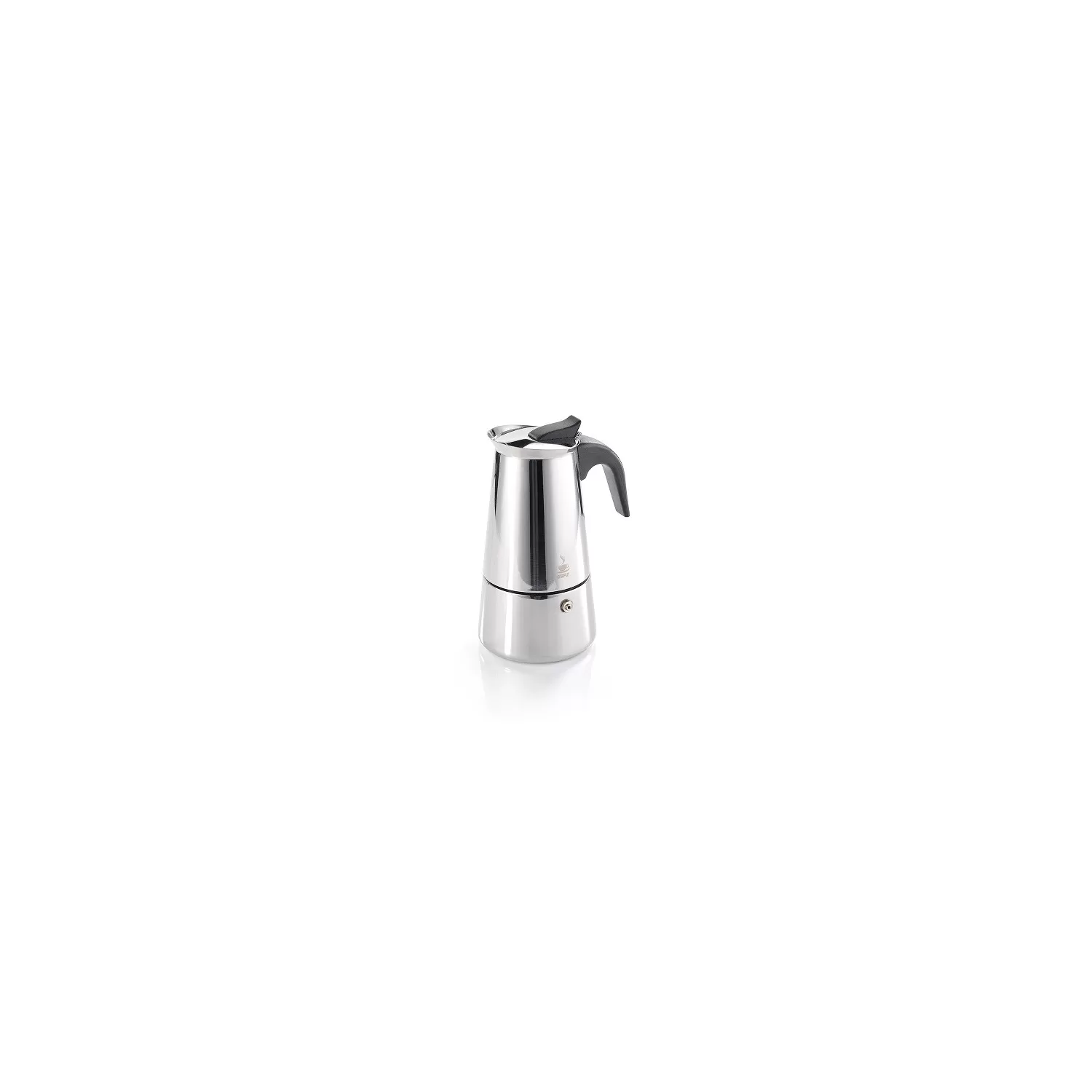 L'espresso appena preparato, così come viene preparato nella maggior parte delle famiglie italiane, è disponibile con la macchina per caffè espresso EMILIO in acciaio inossidabile.
