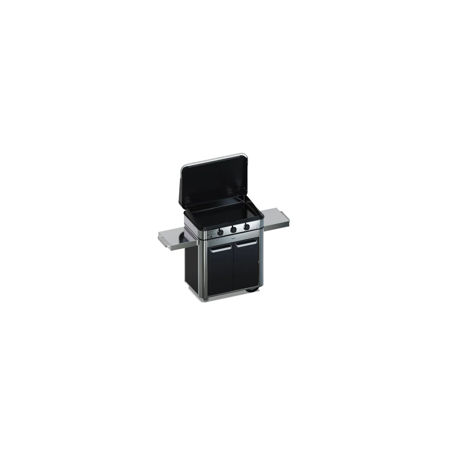 Progettato con dettagli notevoli, questa plancha 3 fuochi su un carrello in acciaio inossidabile combina la funzionalità di una plancha di fascia alta con un design elegante e contemporaneo.