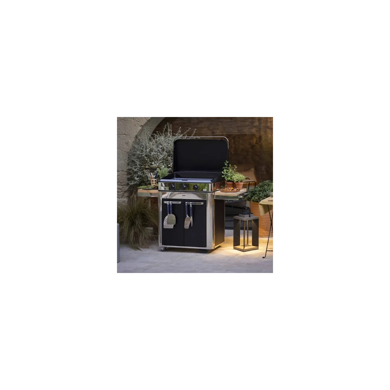 Carrello da esterno con plancha a Gas - Enosing - Plancha a Gas Cm.80, Nero e inox - Eno
