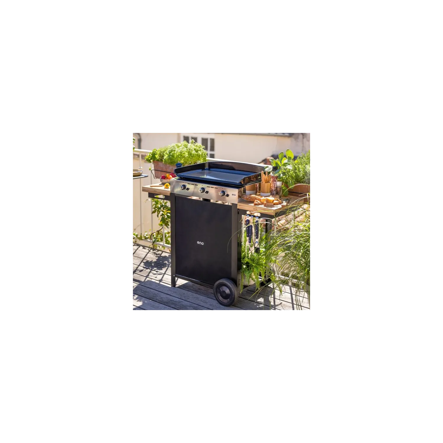 Carrello da esterno con plancha a Gas - Intial - Plancha a Gas Cm.65, Nero e inox- Eno