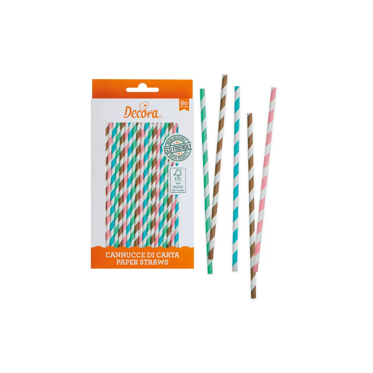 Cf 80 cannucce stripes Ø 6x210 mm in carta bio - Decora.