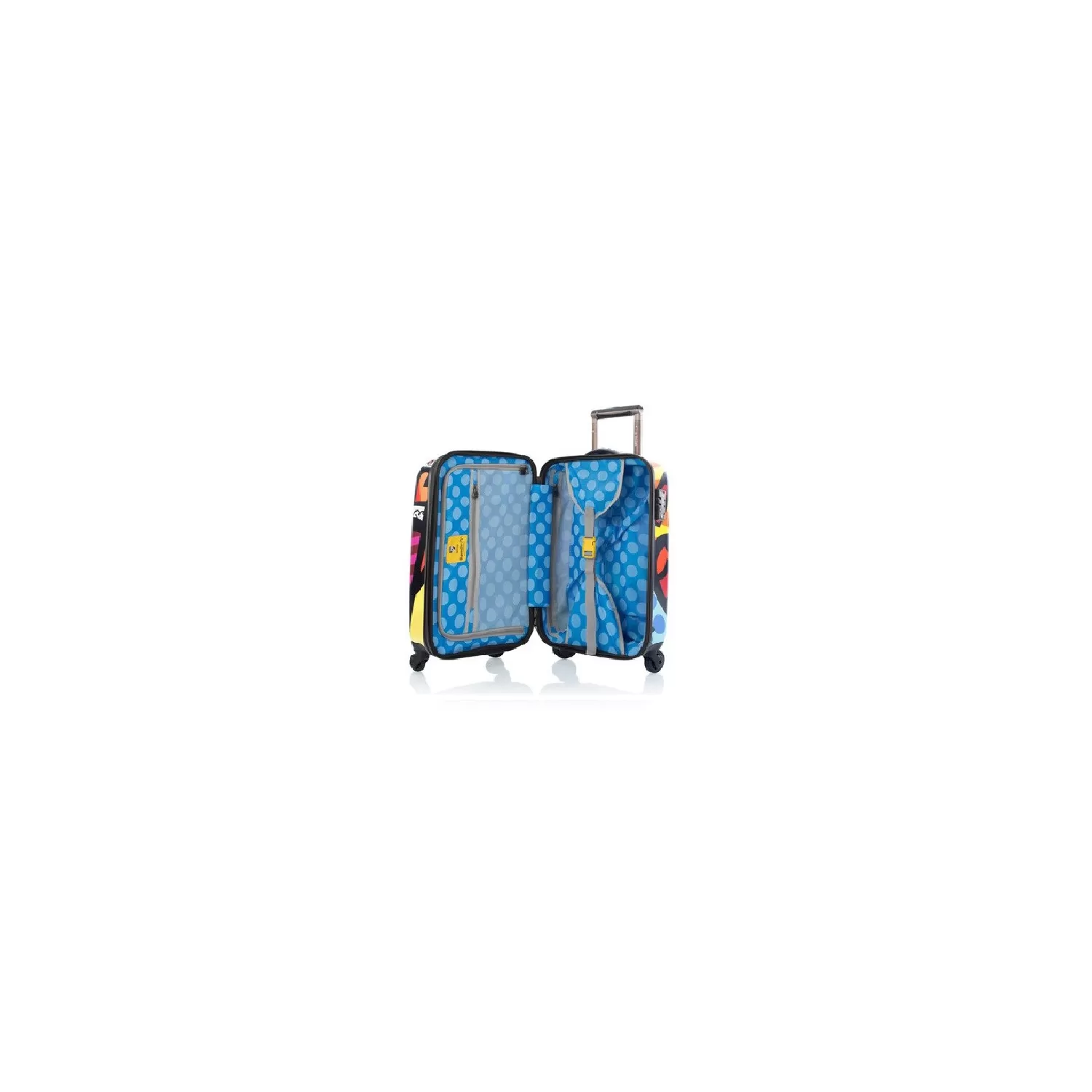 C?ome con tutti i bagagli Heys il Trolley di Romero Britto è incredibilmente leggero e dispone di quattro ruotera con una rotazione a 360 gradi. Questo sistema a quattro ruote diffonde uniformemente il peso permettendo uno sforzo minore. Il Trolley da cabina Cm. 56x36x23 è dotato di una cerniera che permette una capacità extra del 20%.