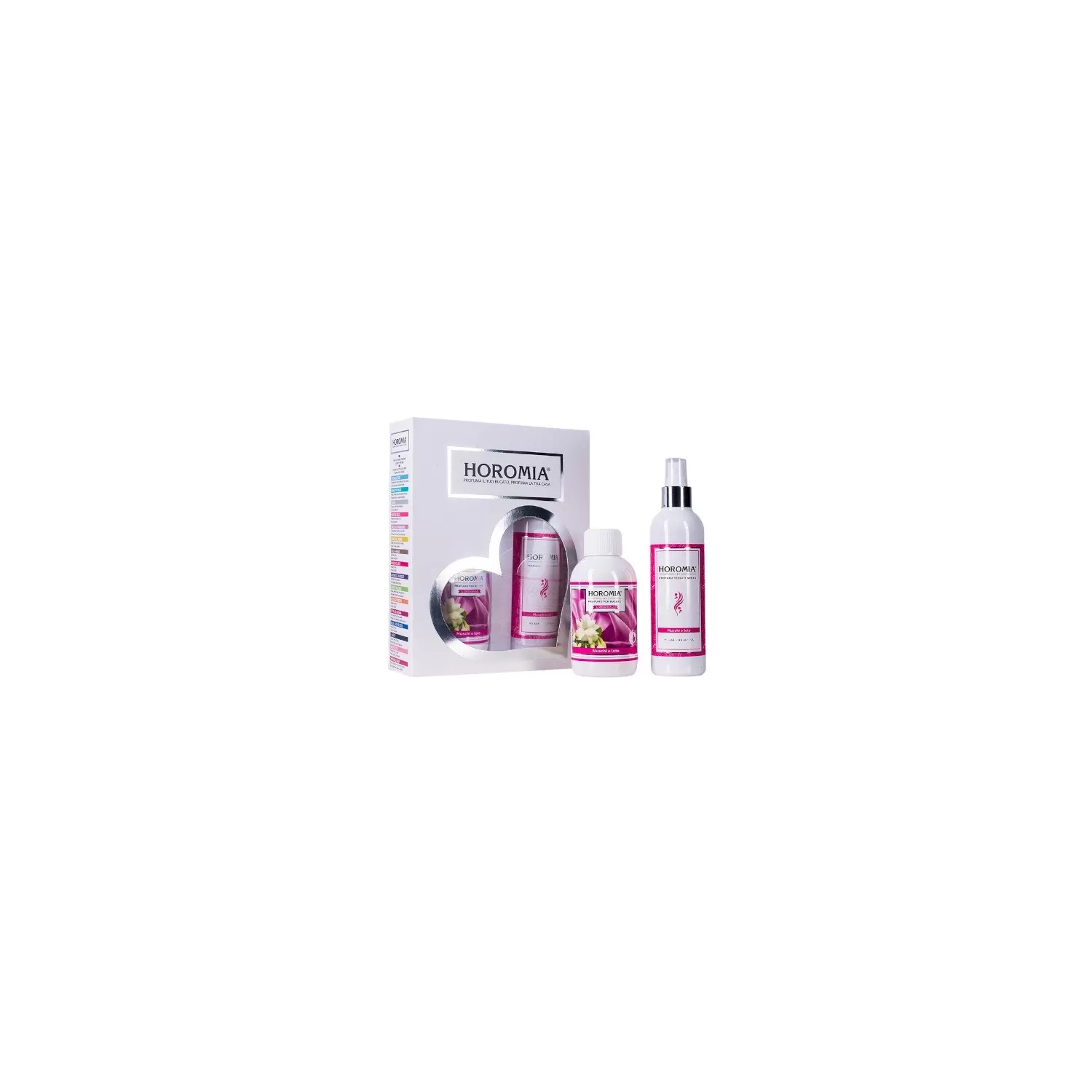 HOROTWINS è una confezione regalo contenente il profuma bucato Horomia e il profumo spray per tessuti della stessa fragranza.
