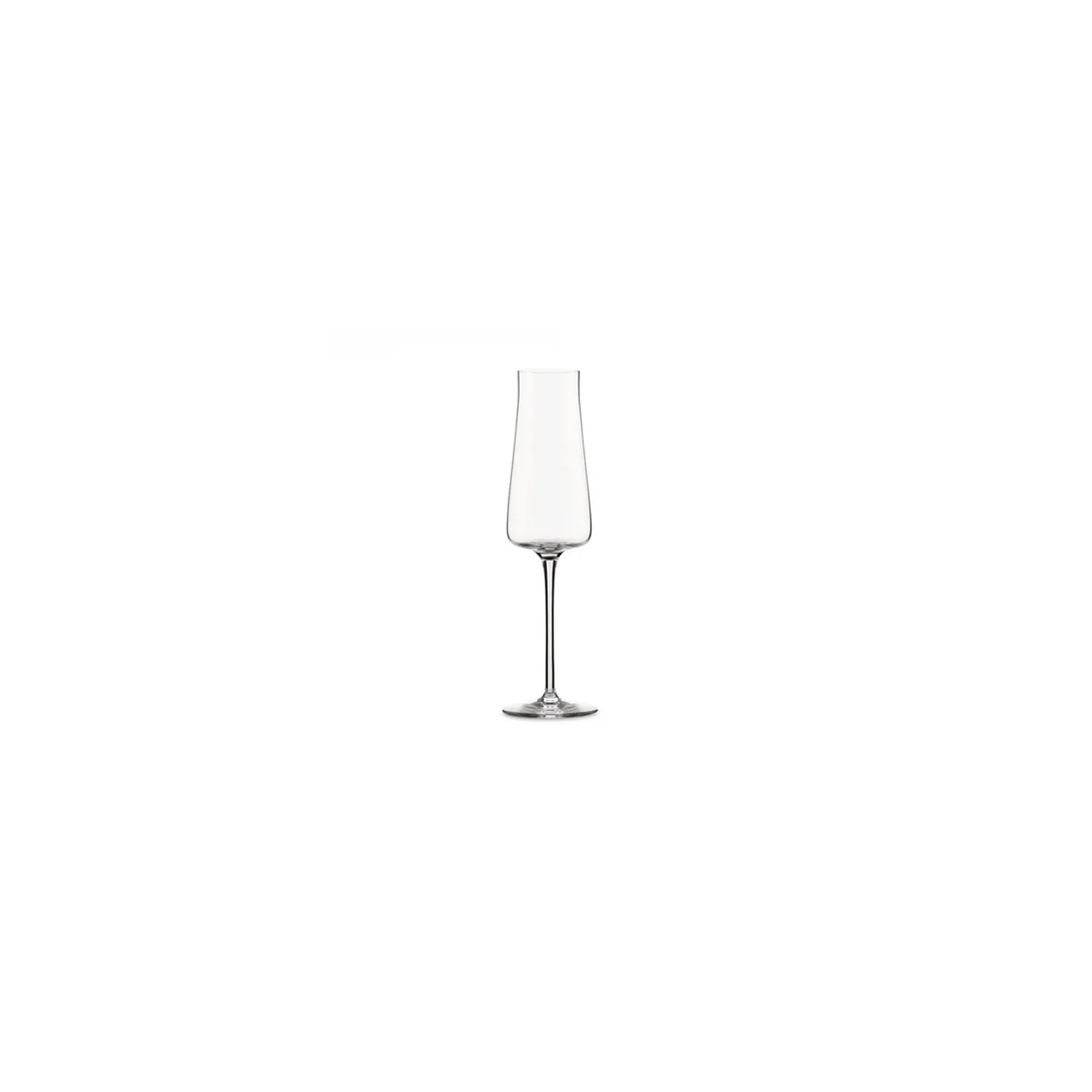 Naoto Fukasawa ha disegnato per il servizio Eugenia un bicchiere per spumanti e champagne ideale per gustare al meglio gli aromi e la vivacità di questo tipo di vini. La forma stretta e allungata, aperta leggermente verso l'alto, aiuta a concentrare gli aromi del vino e a lasciare alle bollicine lo spazio di espandersi. Il lungo stelo preserva il vino dal calore della mano, conservandolo alla temperatura corretta.