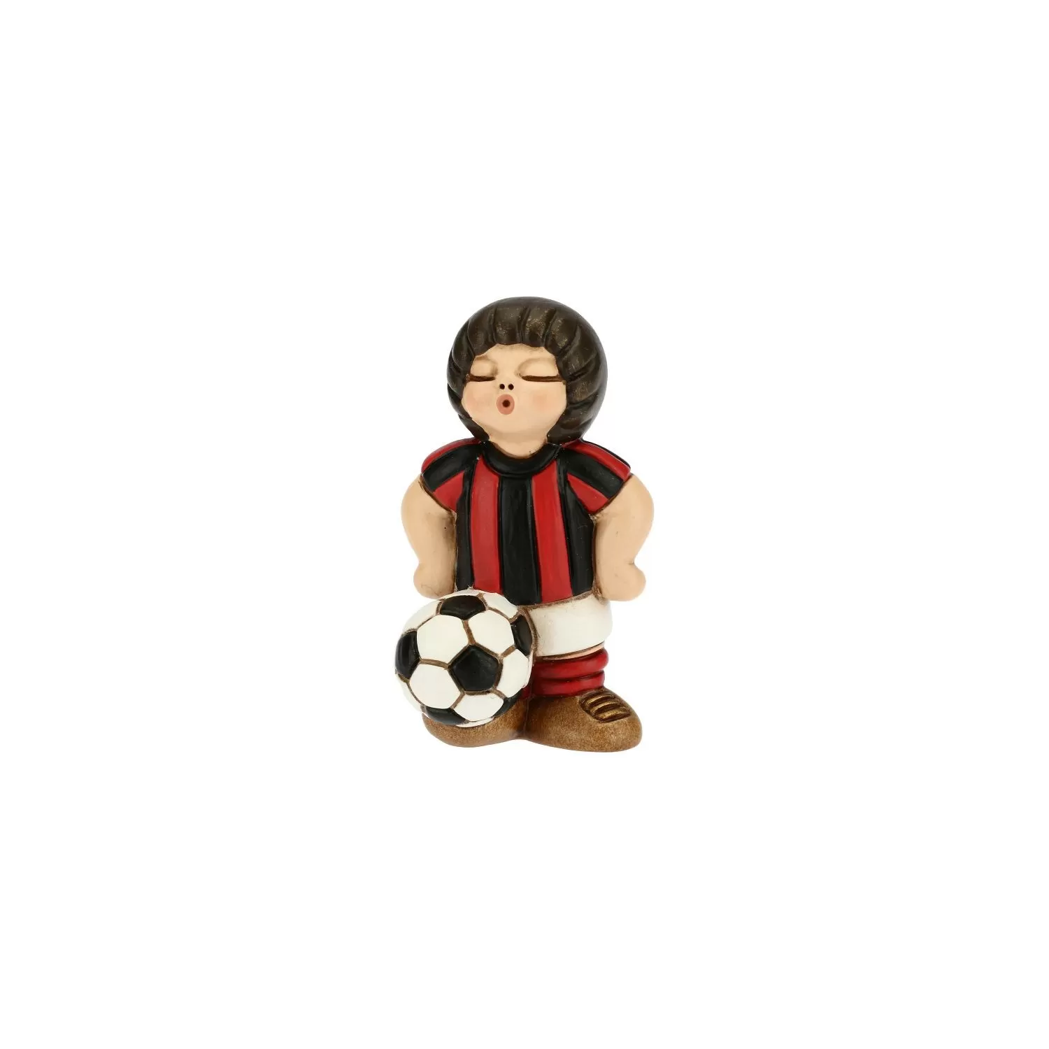 Bimbo calciatore rosso nero in ceramica - Thun