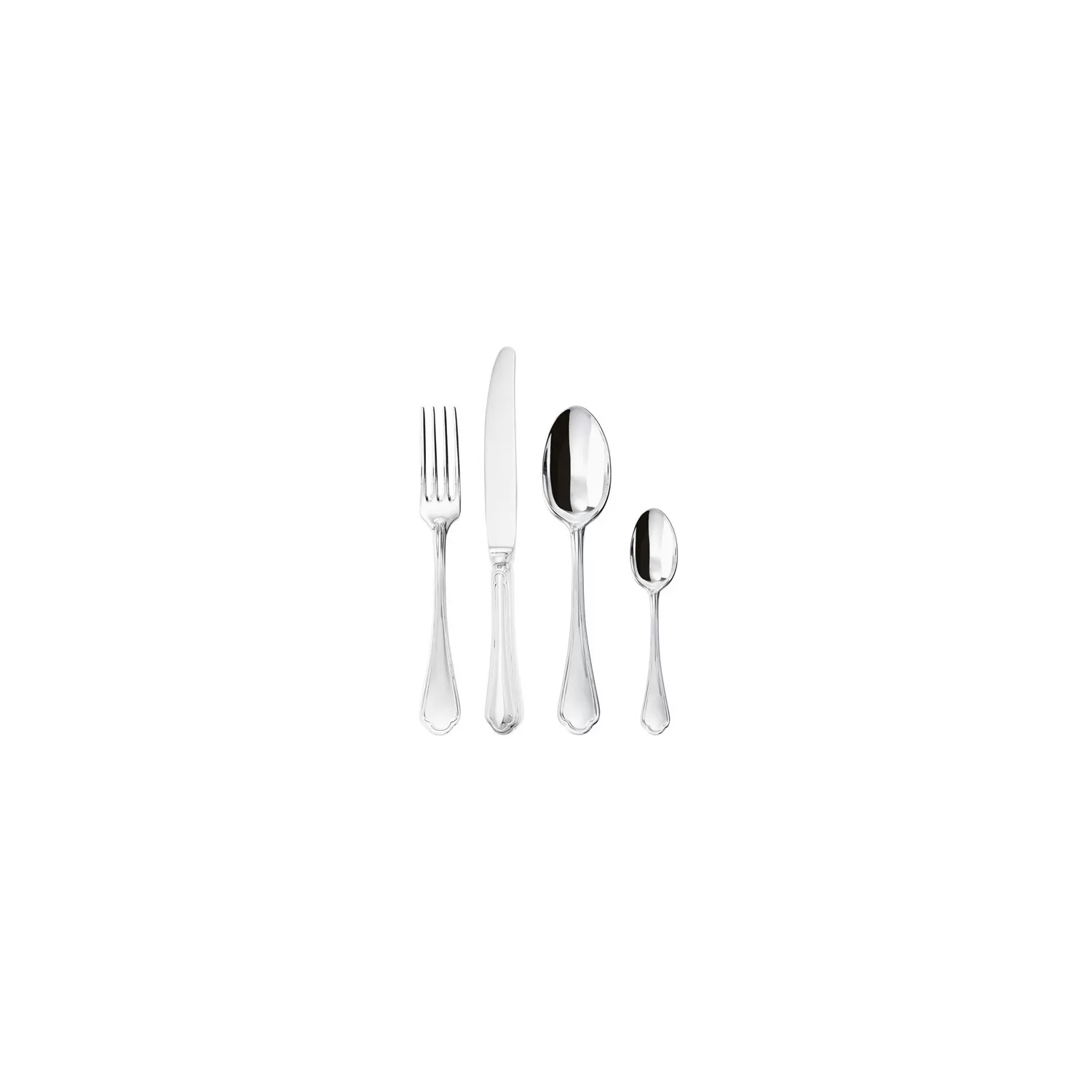 6 cucchiai tavola, 6 forchette tavola, 6 coltelli tavola, 6 cucchiaini tè - tipo di manico: Manico Cavo Orfèvre