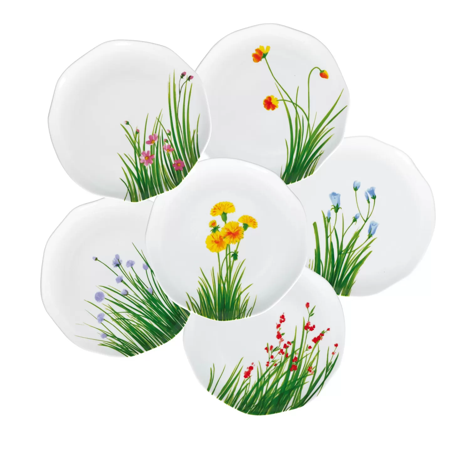 Flores, 6 piatti piani mix Cm. 27, h. 2,5 Cm. - Rose & Tulipani