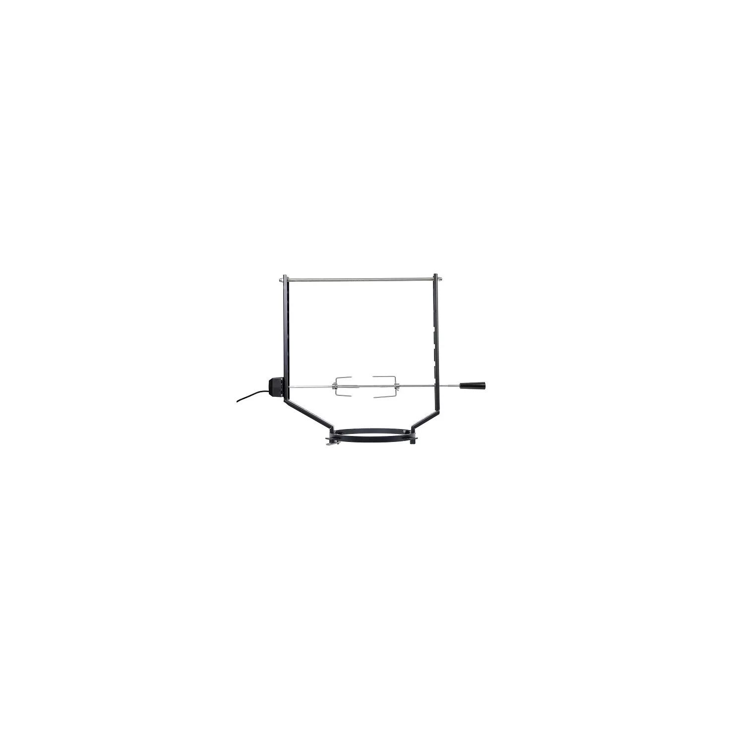 o Spit on Fire Ring è un girarrosto adatto a tutti i bracieri con diametro esterno di 100 cm e diametro interno di 50 cm. Il girarrosto è composto da un anello in acciaio inox verniciato a polvere nera e supporti in acciaio inox verniciati a polvere. Inoltre, uno Spit in acciaio inossidabile e un motore elettrico in grado di sopportare fino a 18 chili. L'anello Spit on Fire si adatta perfettamente al centro del braciere, permettendoti di cucinare pollo, tacchino, spiedini, salsicce e altre carni perfettamente cotti sul fuoco.