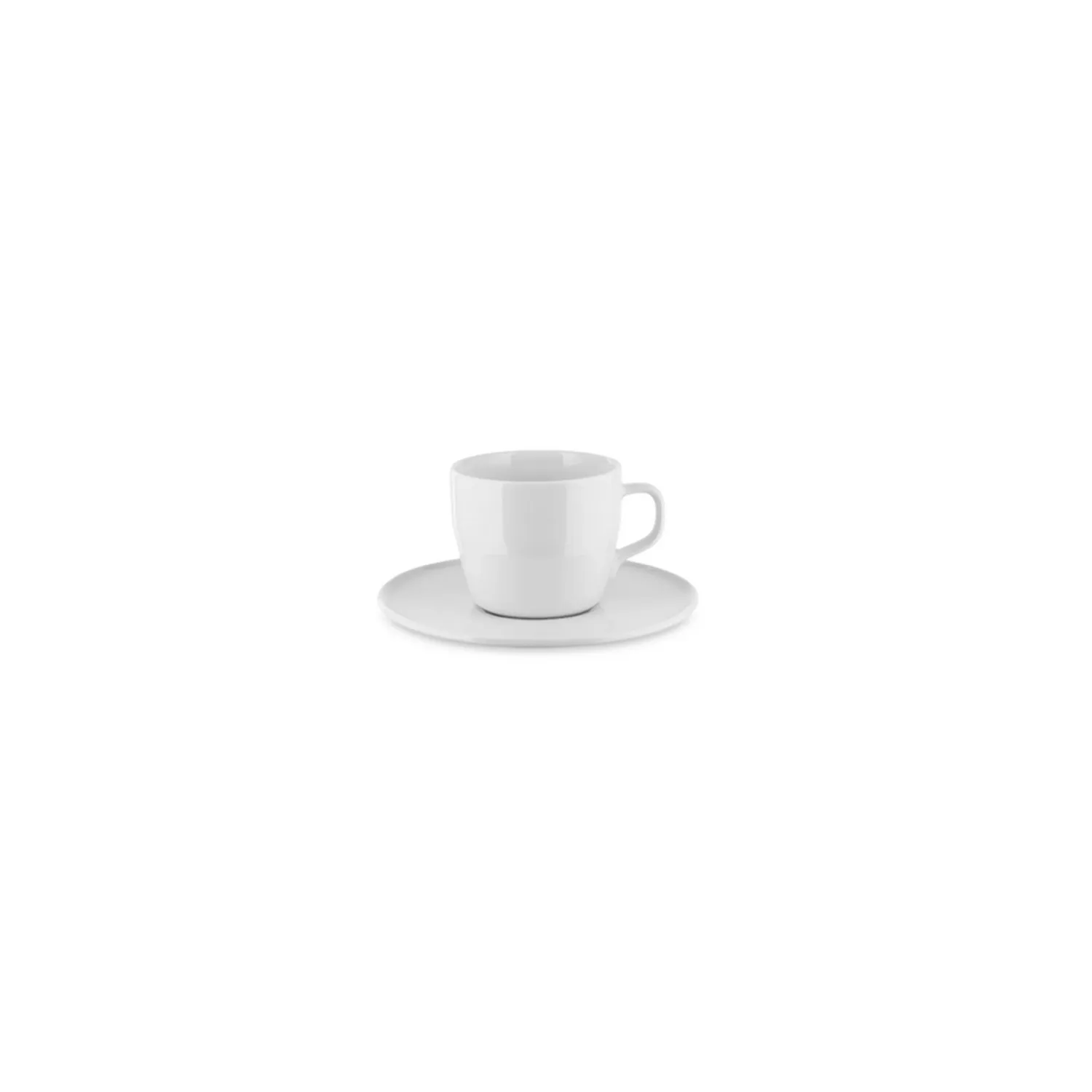 Set di una tazza da caffè-filtrato con sottotazza in porcellana bianca.