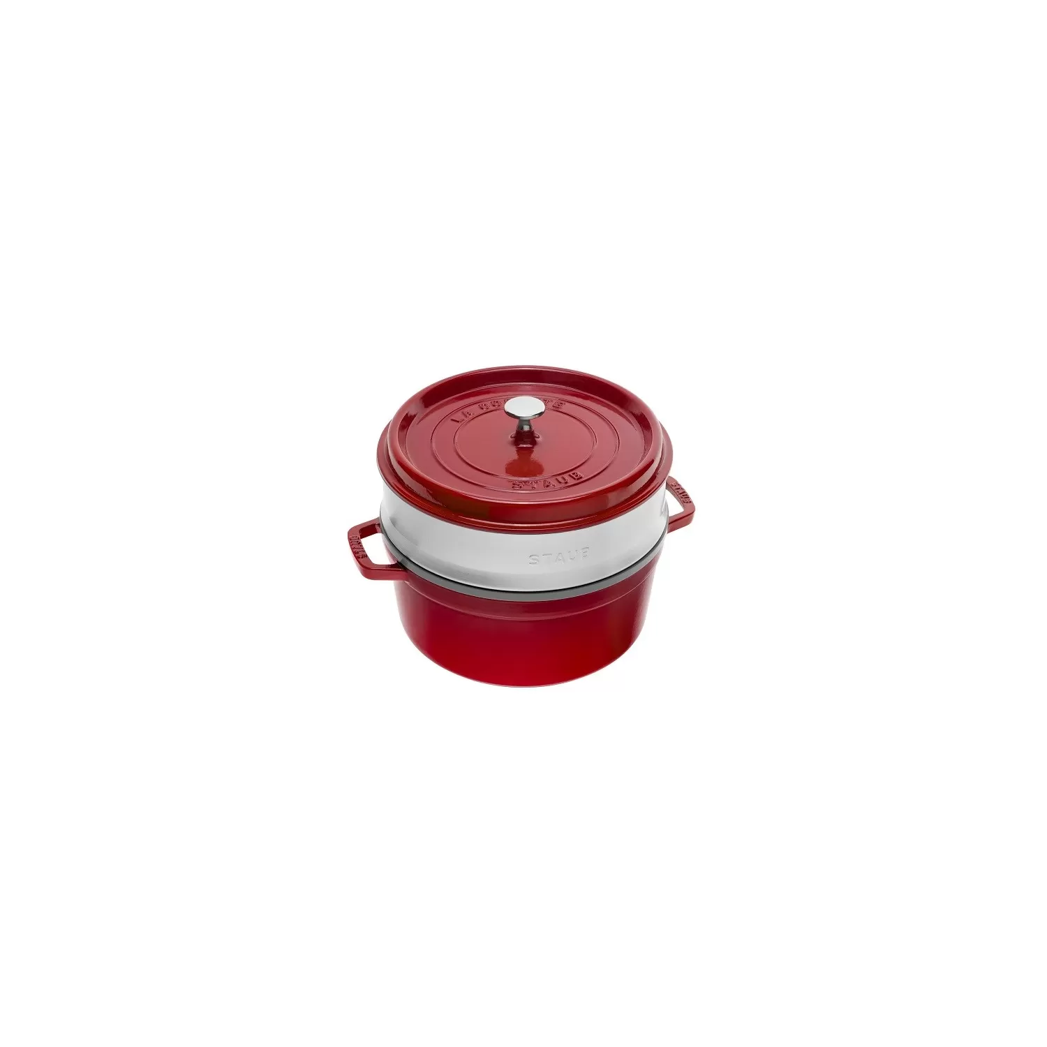 Cocotte in ghisa tonda con cestello a vapore rosso ciliegia Cm. 26 - Staub.