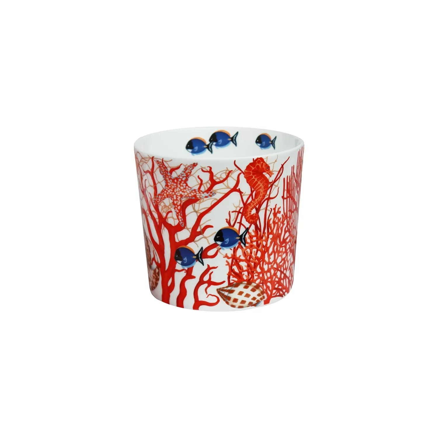 Un prezioso frammento di barriera corallina in cui nuotano pesci colorati, tra nautilus e stelle marine; una celebrazione della selvaggia bellezza delloceano.