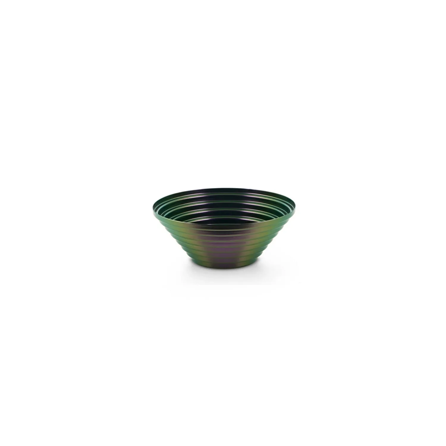 Cestino rotondo in acciaio colorato con finitura in resina iridescente, Greenpurple.