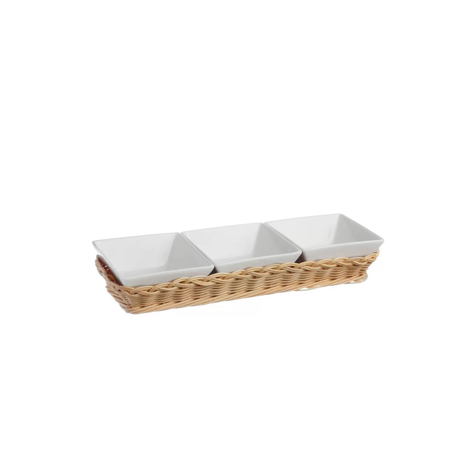 Midollino, Supporto per 3 ciotole quadrate Cm. 10 prato - La Porcellana Bianca.