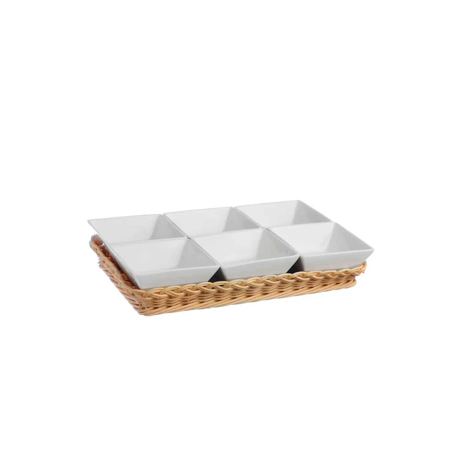 Midollino, Supporto per 6 ciotole quadrate Cm. 10 prato - La Porcellana Bianca