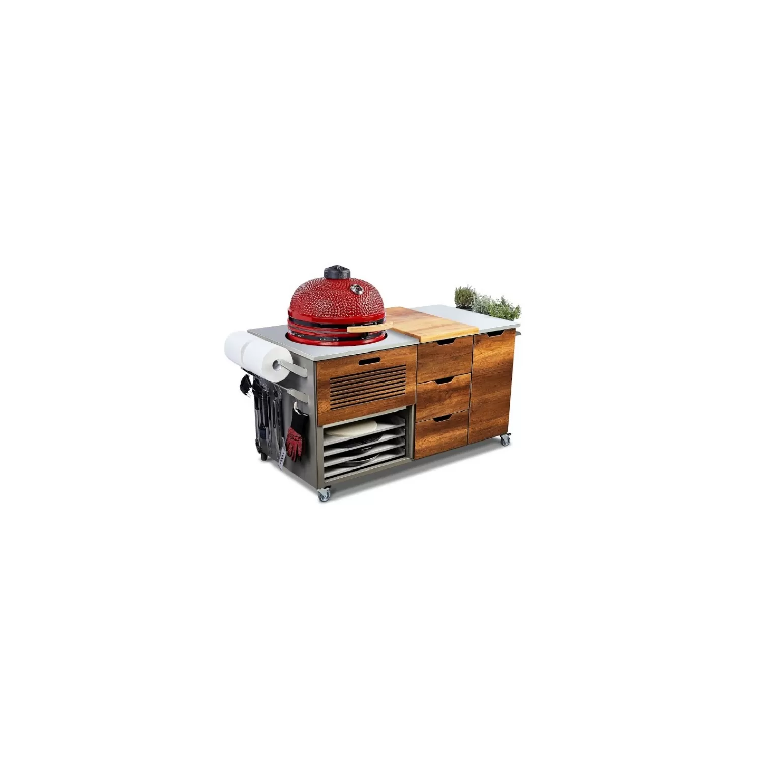 - Erbe aromatiche sempre a disposizione? Nessun problema! Kamado space è dotato anche di una mensola laterale per tutte le vostre piantine.