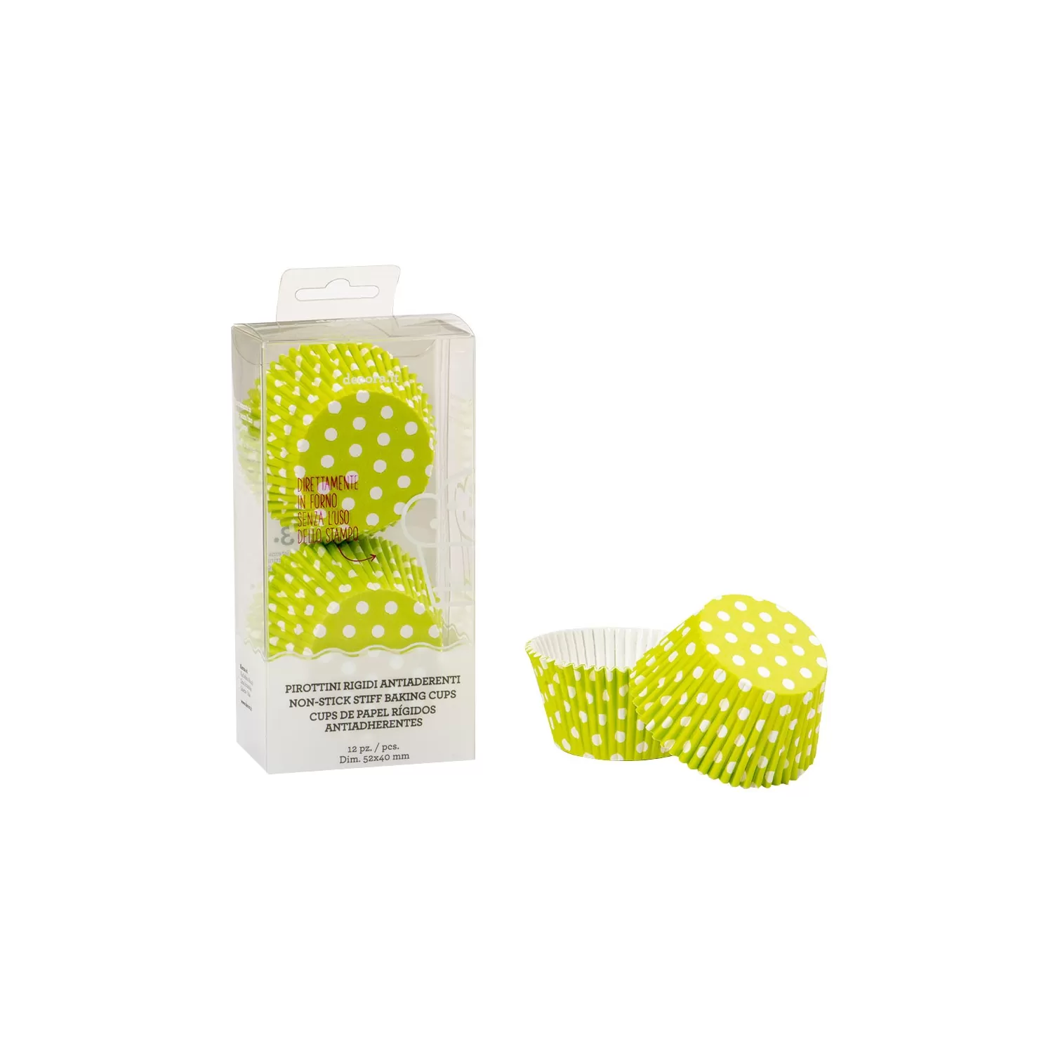 Cf 12 pirottini verde a pois Ø 5 cm - Decora.