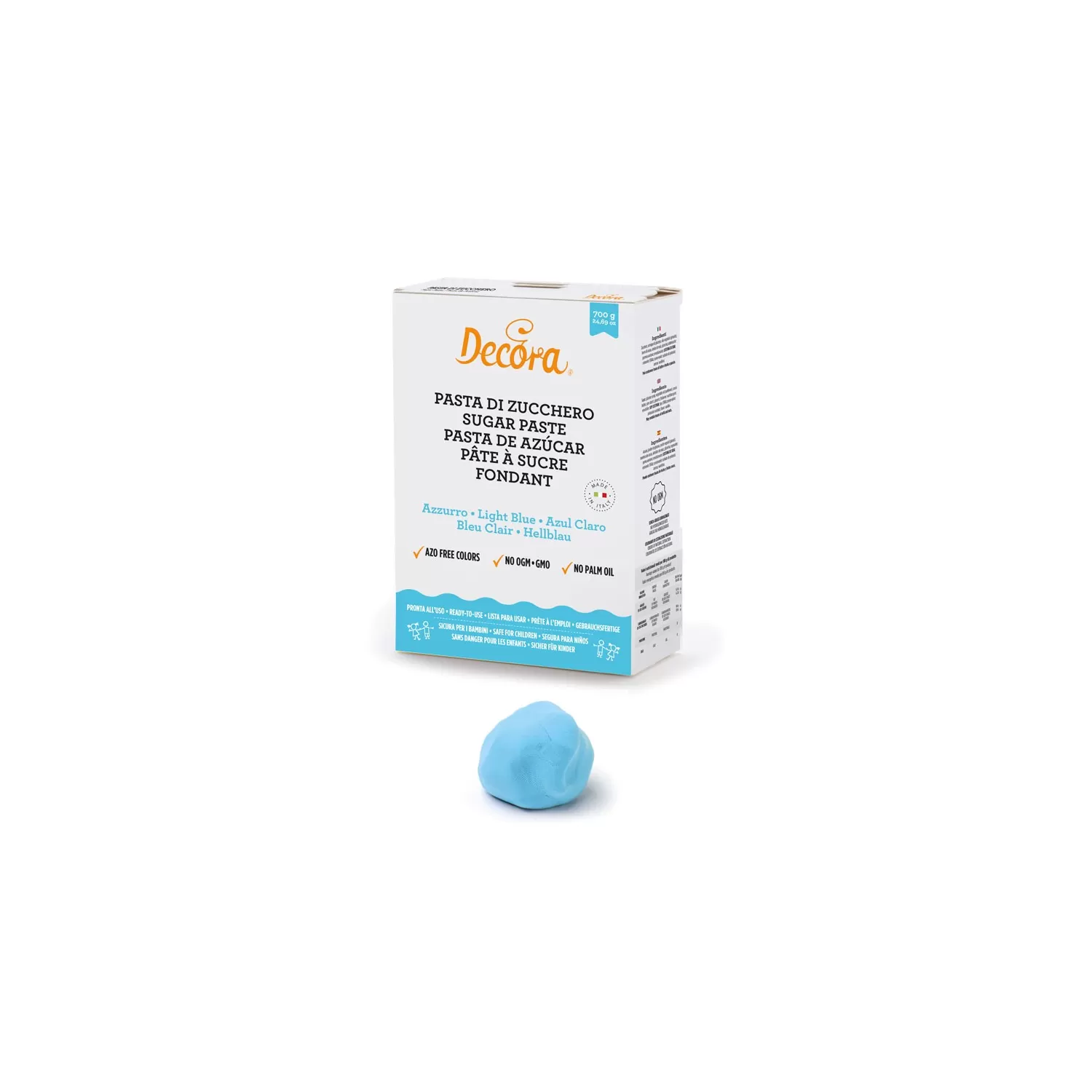 Pasta di zucchero azzurra 700 g - Decora.