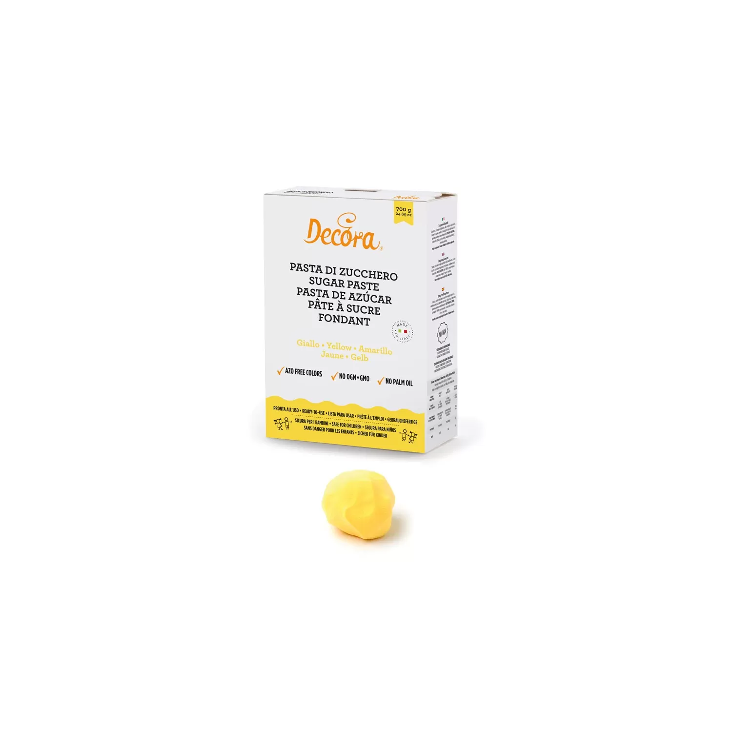 Pasta di zucchero gialla 700 g - Decora.