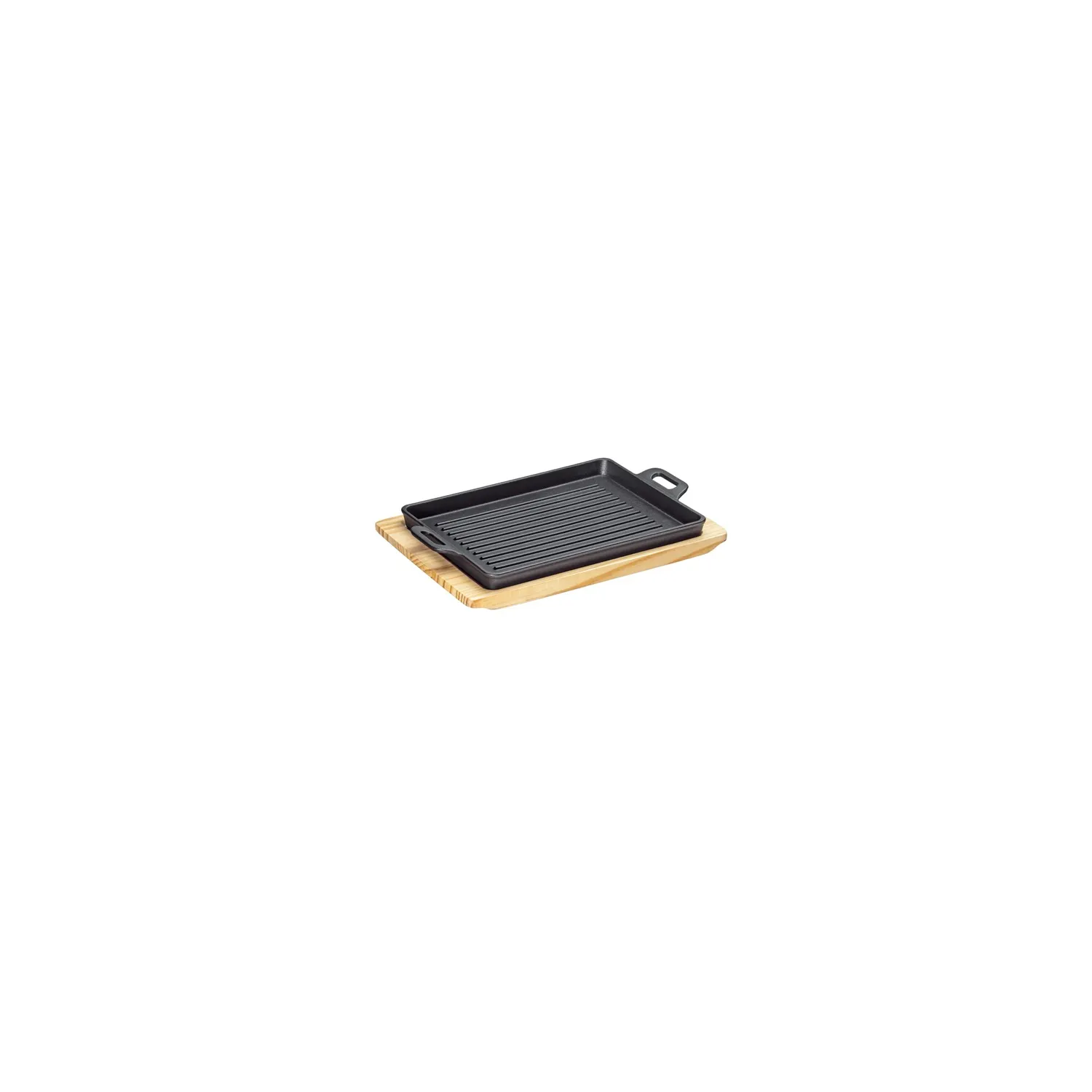 Padella grill/da portata "BBQ" rettangolare con 2 manici e supporto legno Cm.32x22x3,5 - Kuchenprofi.