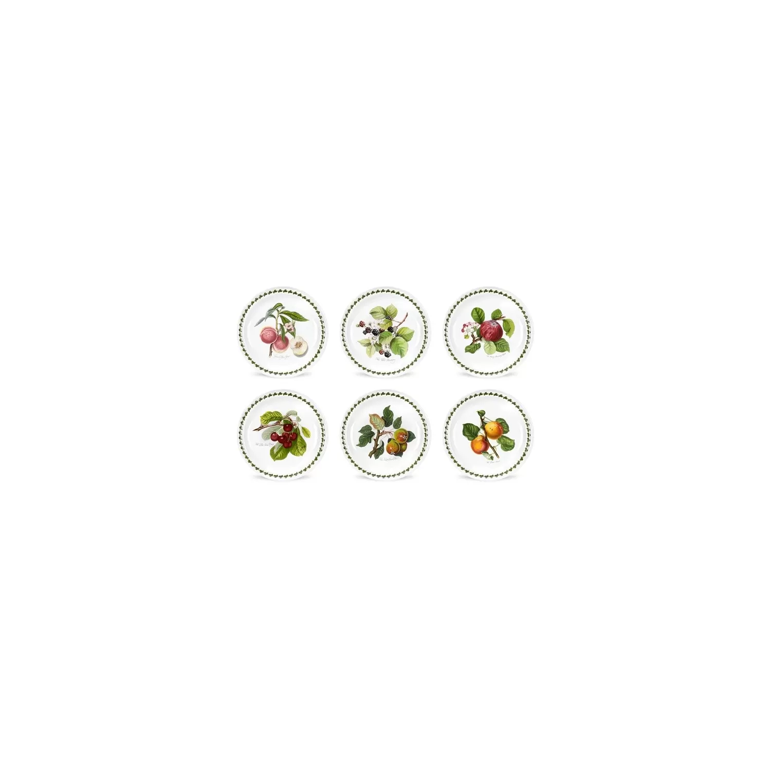Questo set Pomona di sei piattini è una vera delizia. Questi accattivanti piatti offrono un modo favoloso per servire i tuoi deliziosi piatti fatti in casa. Con le sue abbondanti rappresentazioni di frutta, Pomona è una gamma di stoviglie e pentole in stile classico che porta la natura nel cuore della casa. Prendendo il nome dall'antica dea della frutta, ogni pezzo Pomona presenta il motivo di un frutto delizioso tratto da libri colorati a mano degli anni '30 dell'Ottocento.