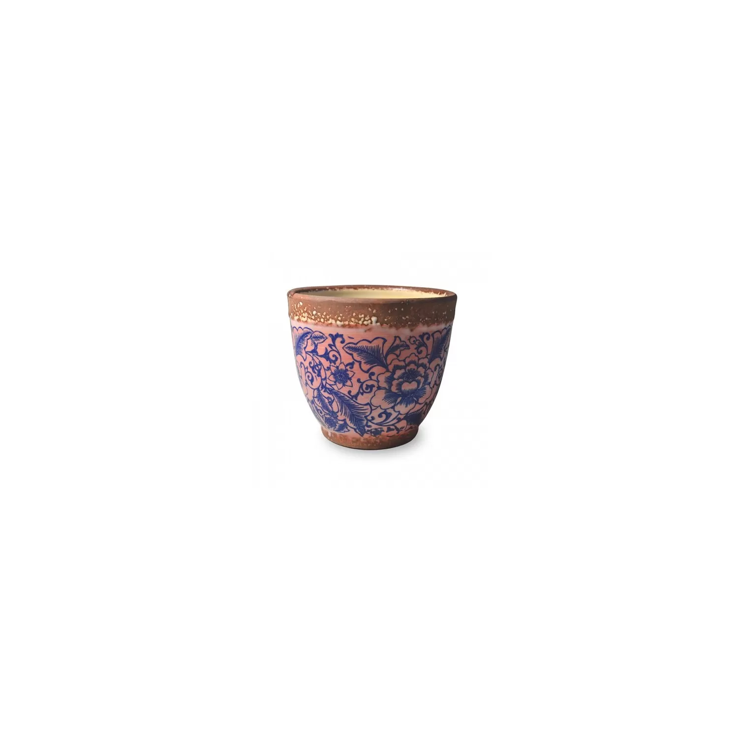 Pot pot, Vaso rosa opaco - fantasia blu d. 15 x h. 13 cm. - Zafferano