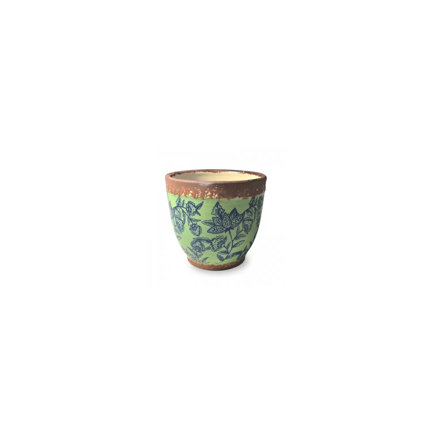 Pot pot, Vaso verde opaco - fantasia blu d. 15 x h. 13 cm. - Zafferano.