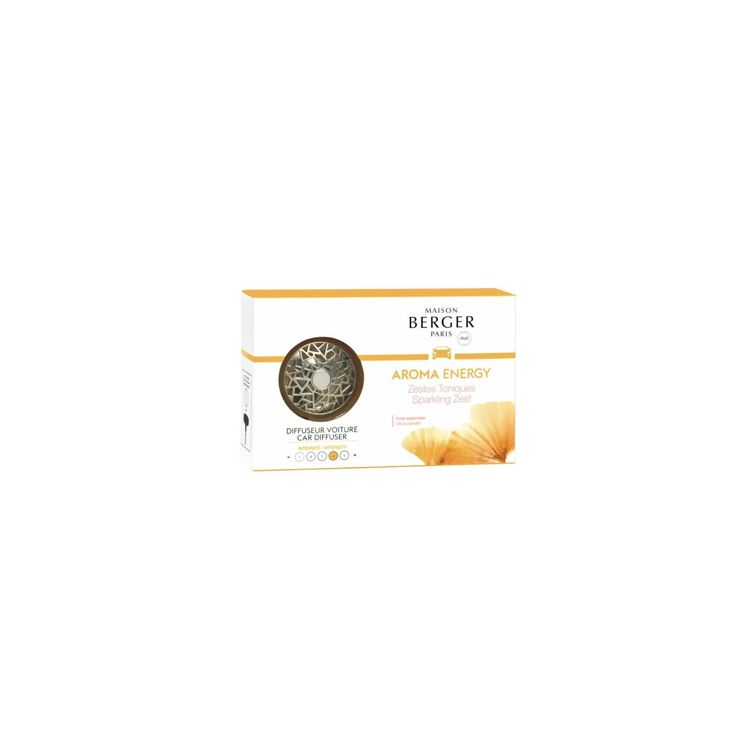 Maison Berger Paris mette a profitto la sua inventività e la sua efficacia per dinamizzare i tragitti quotidiani e decorare labitacolo dellauto. Un tocco di originalità con questo diffusore per auto Aroma, con la sua forma ispirata alla mashrabiyya e la sua finitura in nichel ma molto contemporaneo. E avrete più dinamismo con gli effluvi Energy Zestes Toniques.