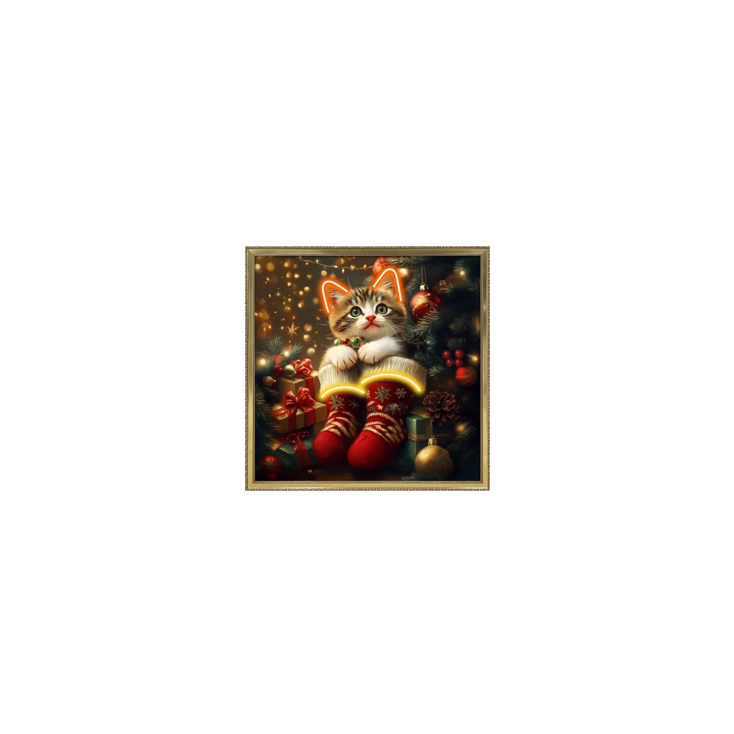 Quadro led, Gatto decorato per Natale Cm.60x60 - Palais Royal