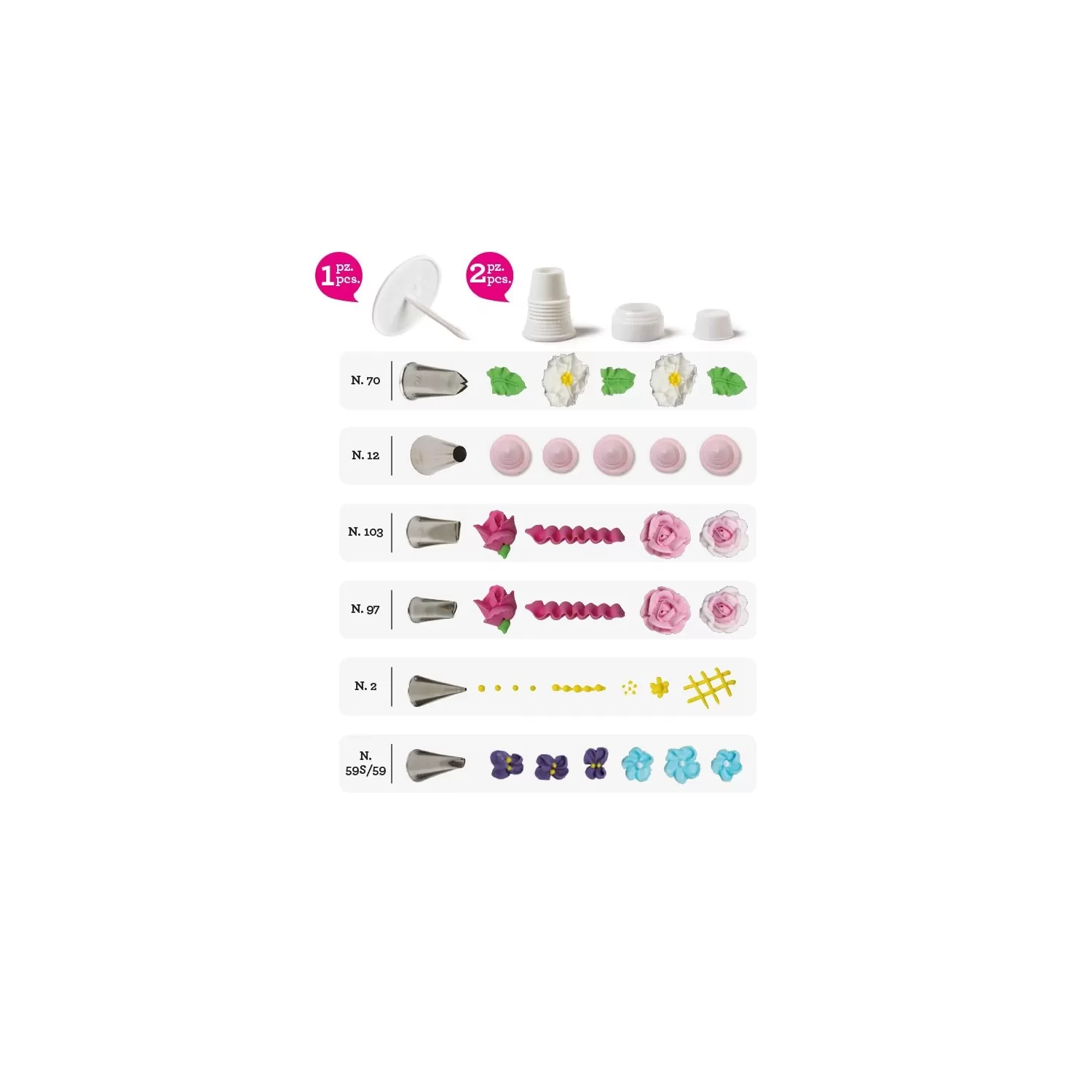 Set 9 pz decorazione al cornetto rose fiori e foglie - Decora.