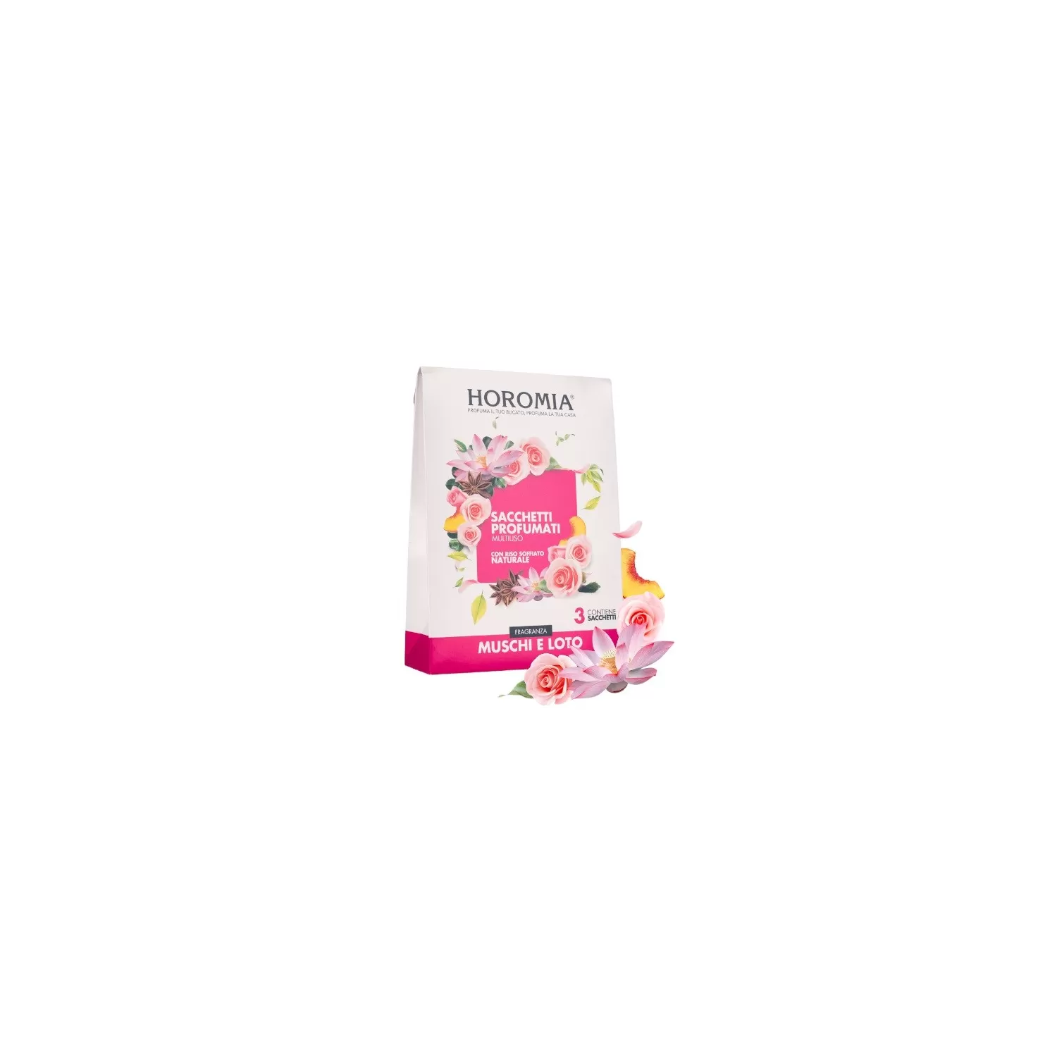 Lunicità e lintensità delle fragranze Horomia ora in Sacchetti Profumati Multiuso. Creati con riso soffiato naturale non alimentare, i sacchetti profumati Horomia sono formulati per donare ai tuoi capi e alla tua casa il profumo unico e inconfondibile della tua fragranza preferita. Ogni confezione contiene tre sacchetti profumati avvolti in una busta trasparente ad alta protezione, per un profumo intenso e duraturo fino a 12 settimane.