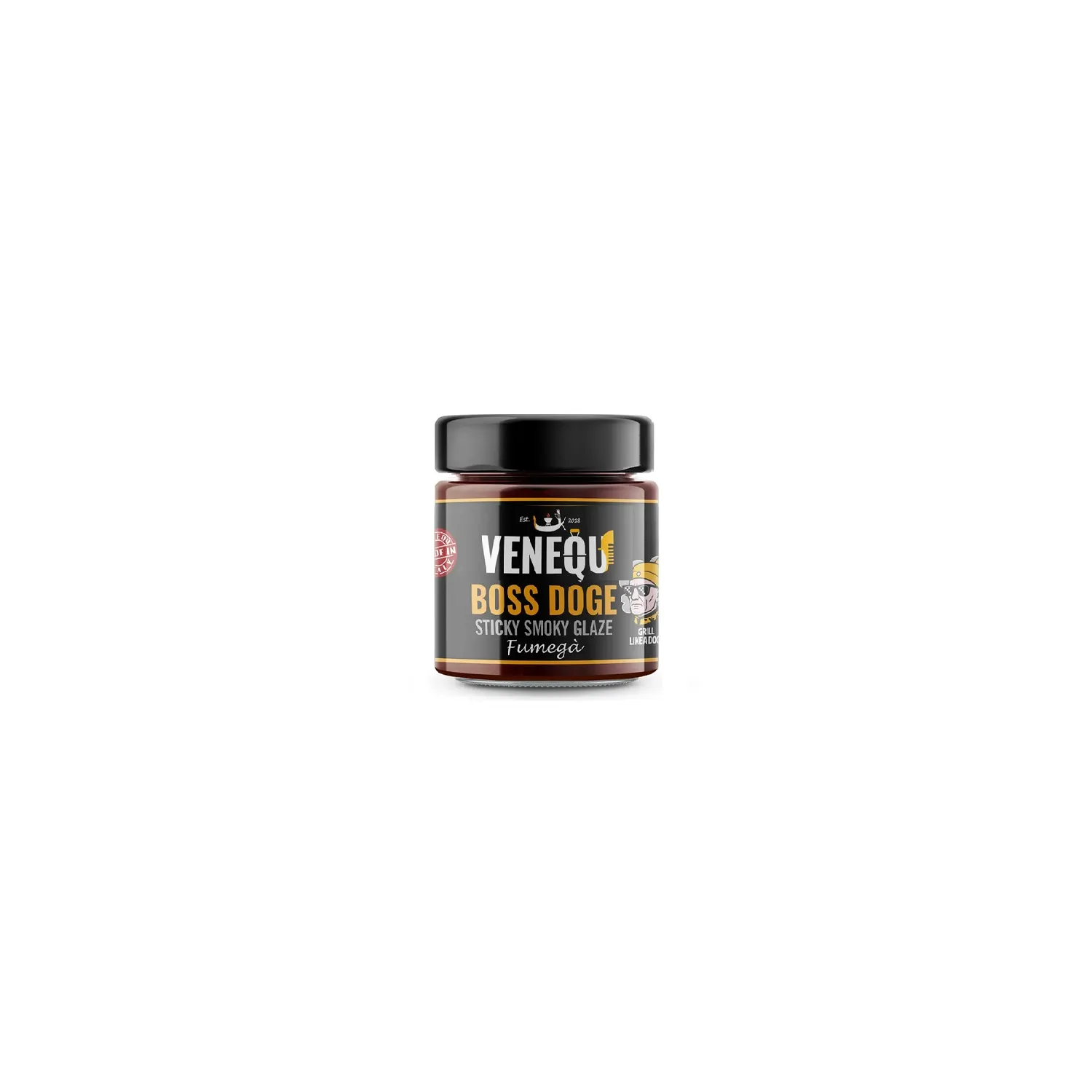 VENEQU BOSS DOGE “Fumegà” è la nostra glassa affumicata dal cuore veneziano: appiccicosa, intensa e avvolgente. Pensata per imprigionare nella brace il carattere nobile e iconico del Doge. Un’esplosione di fumo, dolcezza e carattere che conquista al primo morso. Pensata per accompagnare cotture lente e saporite, è perfetta per glassare pork ribs e chicken wings e per condire preparazioni al barbecue come il pulled pork e il brisket.