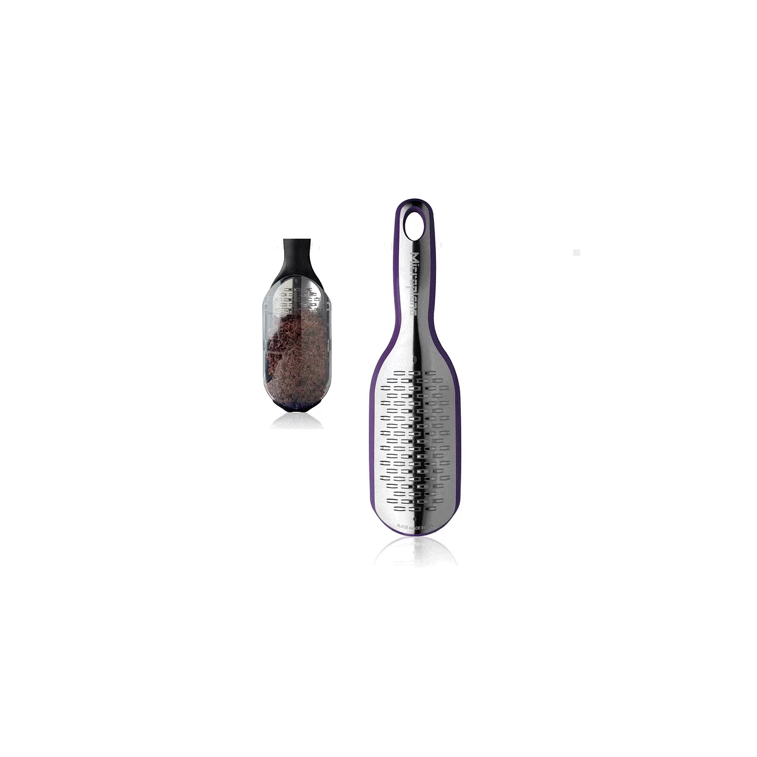 Unica tra le grattugie Microplane, la nuova Serie Elite è accessoriata da una copertura in plastica con doppia funzione: contenitore per il grattugiato e contenitore graduato da 250ml.