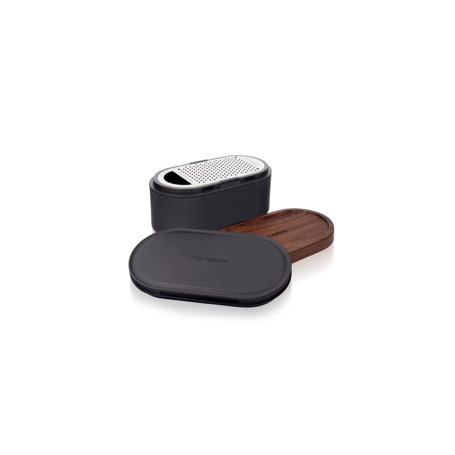Gratugia Box con contenitore e 2 coperchi grigio scuro / legno di noce serie Specialty - Microplane