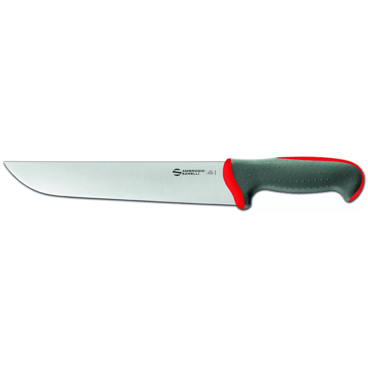 Nuova linea di coltelleria professionale con manico a doppio stampaggio e lame in acciaio inossidabile al cromo, molibdeno e vanadio X50CrMoV15. Il manico è costituito da unanima interna in materiale plastico rigido ed indeformabile, unito con la massima sicurezza al codolo di acciaio, e da un rivestimento esterno più morbido in gomma termoplastica. I due materiali aderiscono perfettamente in modo da formare un corpo unico al tatto. La parte più esterna, di colore grigio, è inoltre stata progettata con micro-sfere che ne esaltano lergonomia, limitando la scivolosità e favorendo il comfort. Tutti i materiali utilizzati sono atossici, sterilizzabili, adatti al lavaggio in lavastoviglie, resistenti alle alte e basse temperature e conformi alle normative vigenti in tema di igiene e sicurezza alimentare.